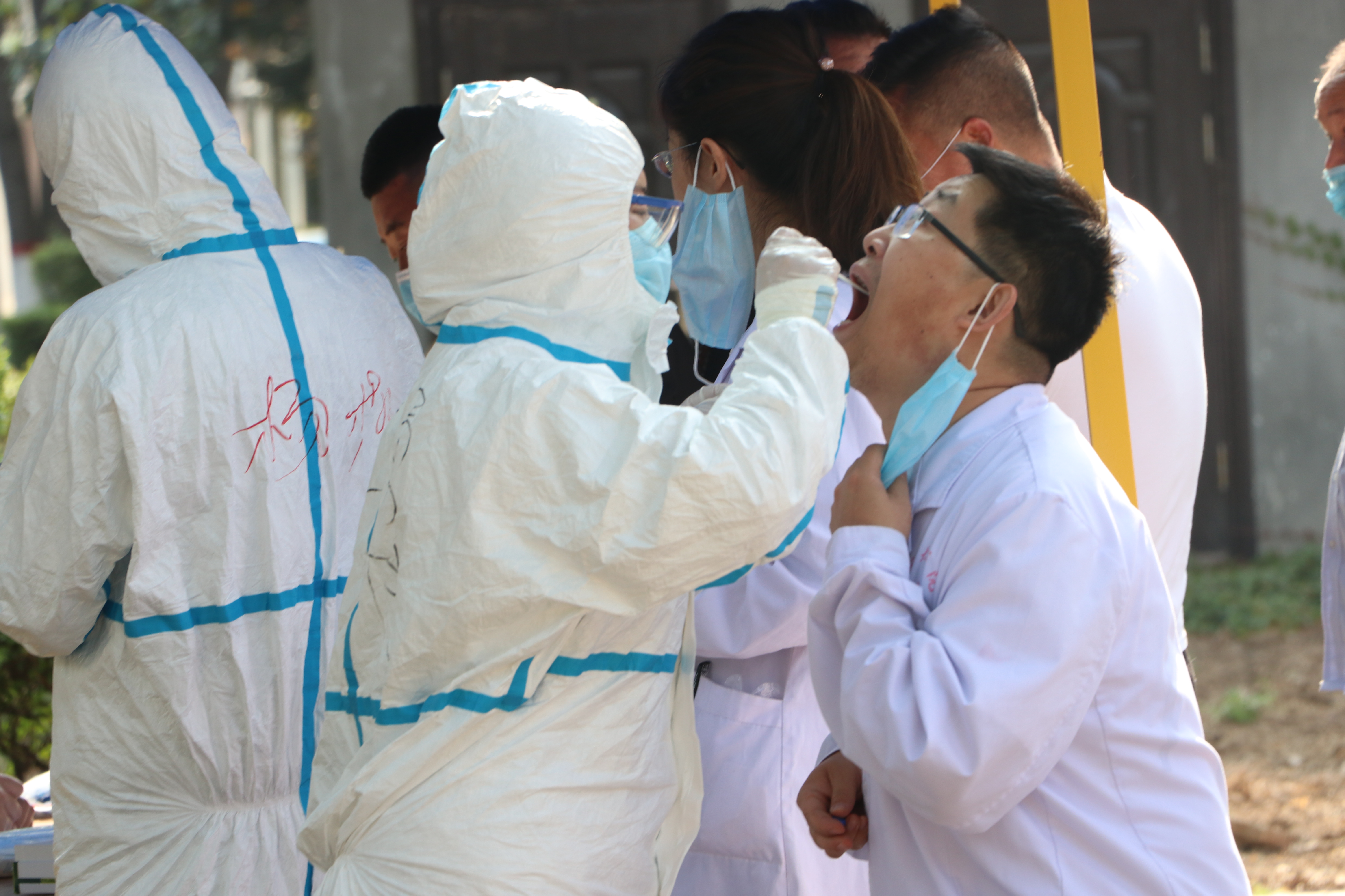 上午8点30分,核酸检测采样工作在两校区同时进行。校疫情防控工作领导小组成员、校医院副院长崔云水,生命科学与医学部戴鹏高教授,永利集团88304官网党支部(直属)副书记杨涛以及相关人员现场进行组织协调工作。校医院医护人员、后勤人员等500余人齐排队,依序采样。西佰美基因股份有限公司技术人员身着防护服对筛查对象进行咽拭子采样