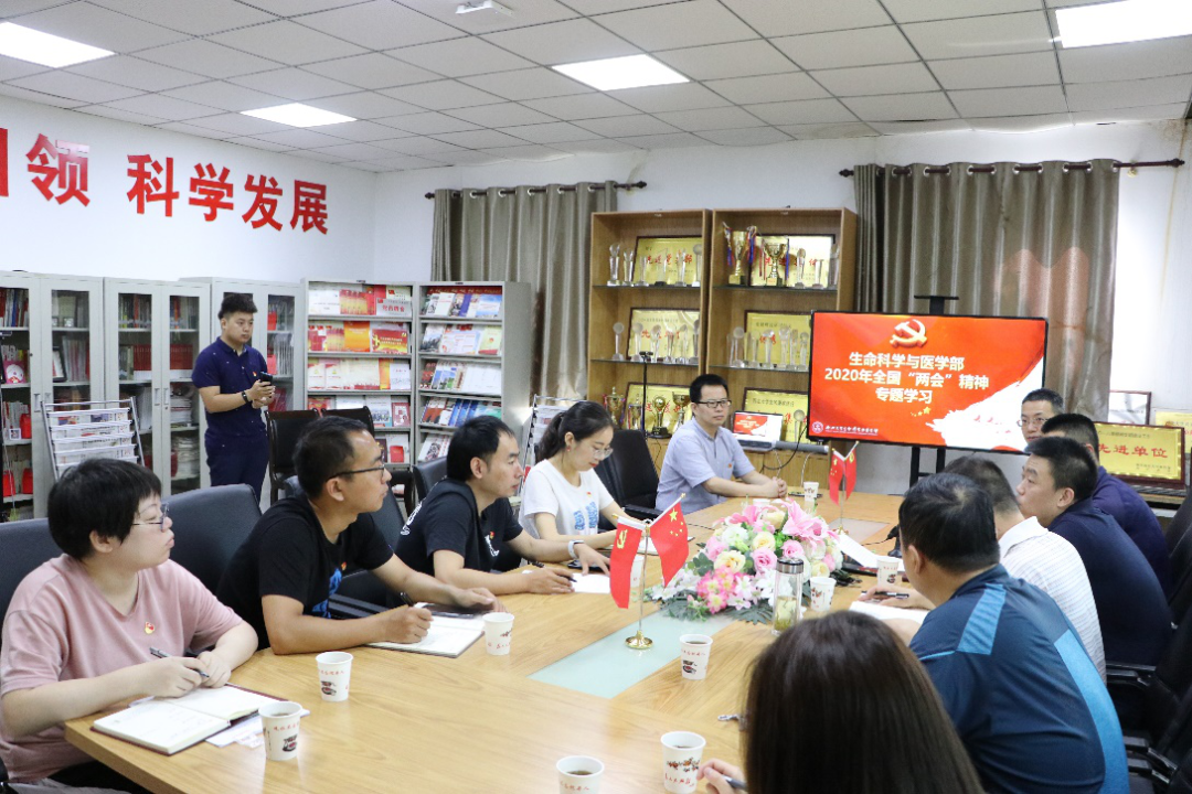 为深入学习宣传2020年全国两会精神,引导广大师生党员同志深刻领会、准确把握两会精神实质,切实增强师生党员的政治责任感和历史使命感,生命科学与医学部自6月中旬以来开展“学习两会精神,勇担青春使命”“两会”精神系列学习活动。活动遵循“接地气、广参与、出实效”的原则,充分运用新媒体技术引导党员关注两会动态、学习两会精神。各学生党支部召开党组织生活会,聚焦“两会”热点、要点、亮点,确定本支部学习讨论话题。通过学院微信公众平台发布各支部学习讨论话题,票选出三个“最话题”。根据围绕选定的三个话题,各支部结合政府工作报告改革重点、社会热点事件,组织党员、预备党员、积极分子展开分阶段、分类别、分层次的深入讨论,形成学习报告。在总结交流会上,围绕“战胜疫情,展现深刻文化精神”“建议将HPV疫苗纳入国家免疫规划”“保护隐私”三个“最话题”,各支部代表进行学习总结汇报。6月30日,学部召开专题学习讨论会,班子成员张宇、关锋、付爱根、李方民、杨涛、陈凯张杰,学部师生党员代表参加会议,将学习两会精神和学习习近平总书记在陕考察重要讲话精神紧密结合,深刻领会核心要义和工作要求,统一思想认识,凝聚工作共识。
