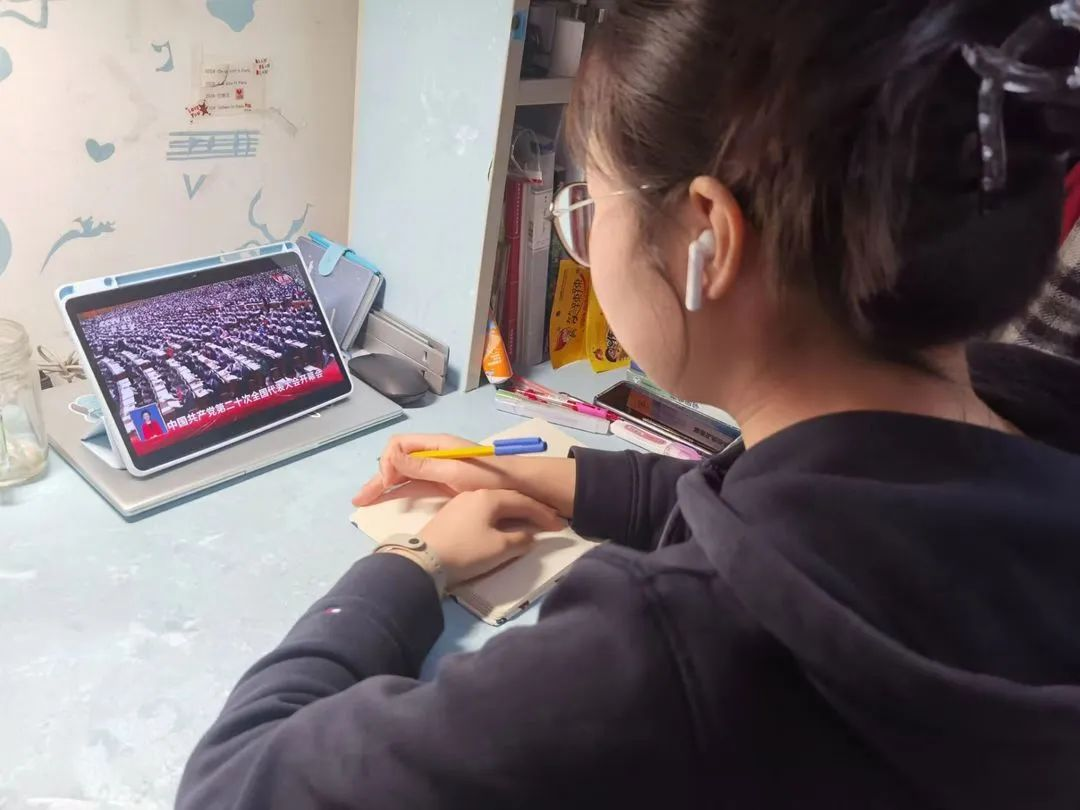 值此庄严时刻,党的二十大如期而至,作为生长在红旗下、春风中的一代学生,我怀着无比崇敬的心情观看了开幕式,希望从中学习党在未来新的目标和方略。习近平总书记提到我们党立志于中华民族千秋伟业,致力于人类和平与发展崇高伟业,责任无比重大,使命无上光荣。针对这点我们年轻一代应该永远拥护党的领导,跟着党走,为中华民族伟大复兴添砖加瓦。时代呼唤着,人民期待着,党用伟大奋斗创造了百年伟业,也一定能用新的伟大奋斗创造新的伟业。