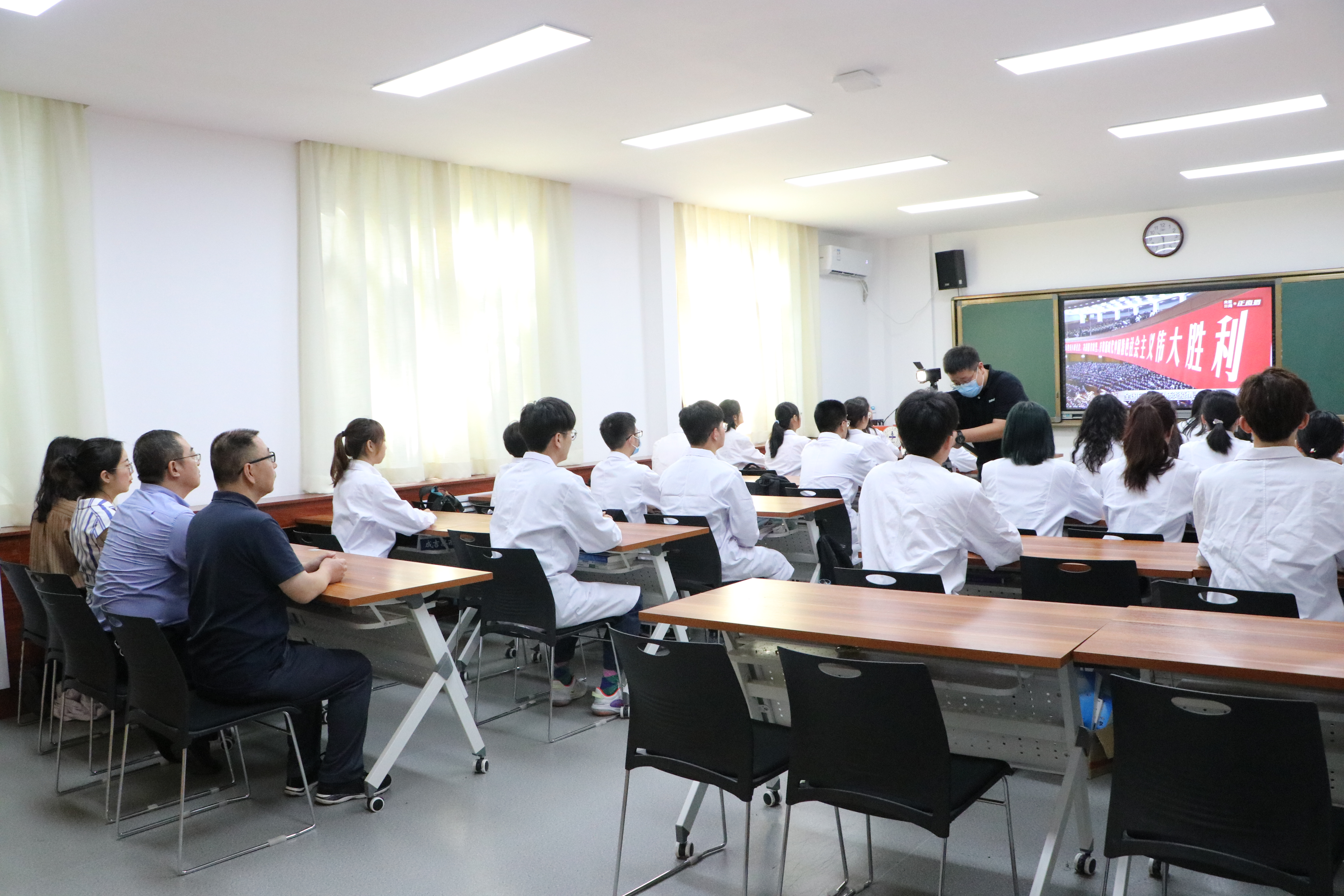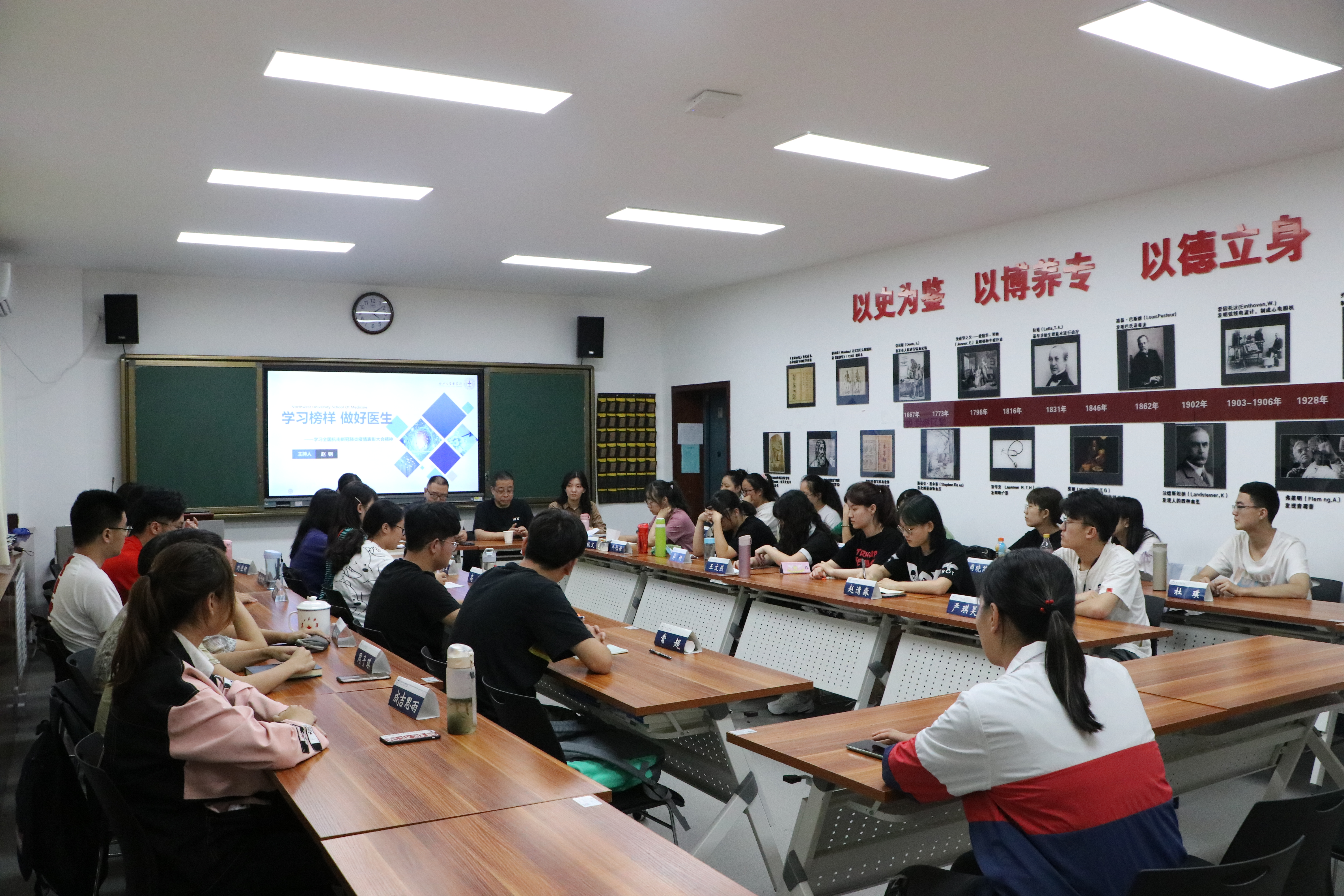 9月8日下午4时,永利集团88304官网院长赵钢教授与2019级临床医学专业本科生开展了“学习榜样,做好医生——学习全国抗击新冠肺炎疫情表彰大会精神”主题座谈会,他讲到,习近平总书记在今天的讲话中说,“伟大抗疫精神,同中华民族长期形成的特质禀赋和文化基因一脉相承,是爱国主义、集体主义、社会主义精神的传承和发展,是中国精神的生动诠释,丰富了民族精神和时代精神的内涵。”在这场抗疫战争中,永利集团88304官网及附属医院勇敢担当、积极作为,附属第一医院、附属医院9名医务工作者作为陕西首批援鄂医疗队成员第一时间逆行武汉,附属西安高新医院6名巾帼随陕西省第二批抗击新冠肺炎紧急医疗队奔赴一线,附属西安国际医学中心医院集结212人医疗队,定点支援武汉市第八医院......他们的义无反顾与英勇无畏充分体现了医者担当、西大情怀。他还详细介绍了国内外医师培养模式,帮助同学们厘清了未来发展道路,希望同学们以榜样的力量激励自己,树立为国为民的医者仁心,珍惜学习时光,努力成长成才,毕业后造福人民。