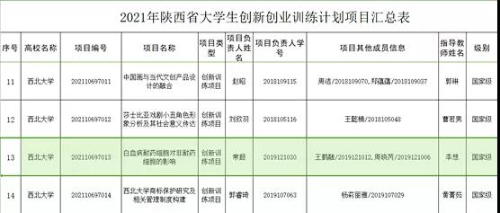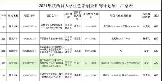 根据陕西省教育厅《关于公布2021年大学生创新创业训练计划项目名单的通知》(陕教高办﹝2021﹞21号),我院共4个项目获批立项。其中,国家级项目2项,省级项目2项。