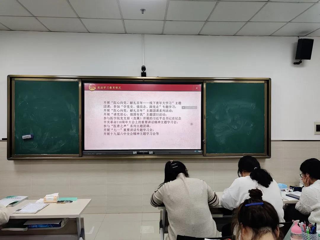 2021级临床医学团支部、口腔医学团支部、生物医学科学团支部集体学习党的十九届六中全会内容,支部团员交流学习心得。各团支部书记汇报党史学习情况,带头开展批评与自我批评。