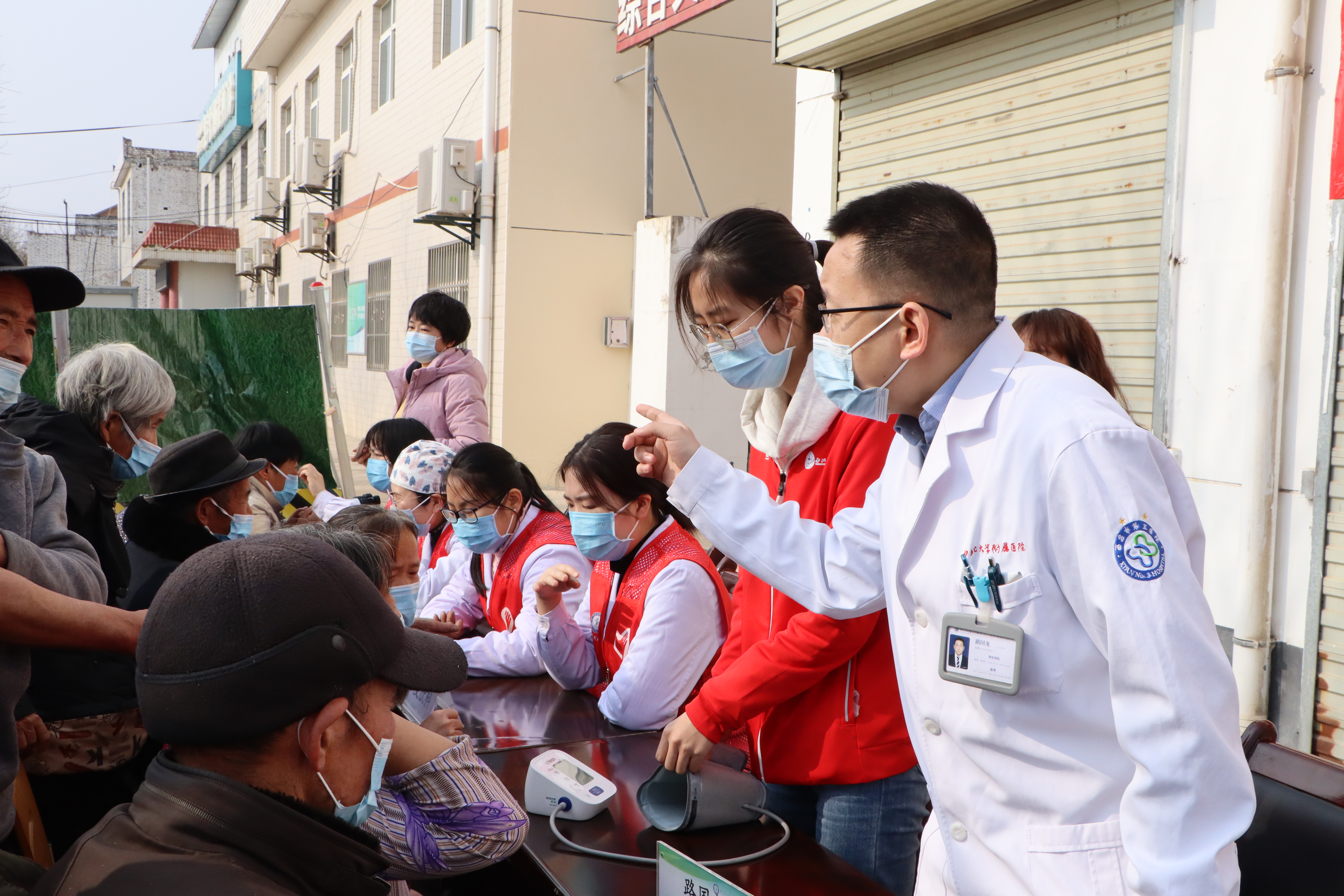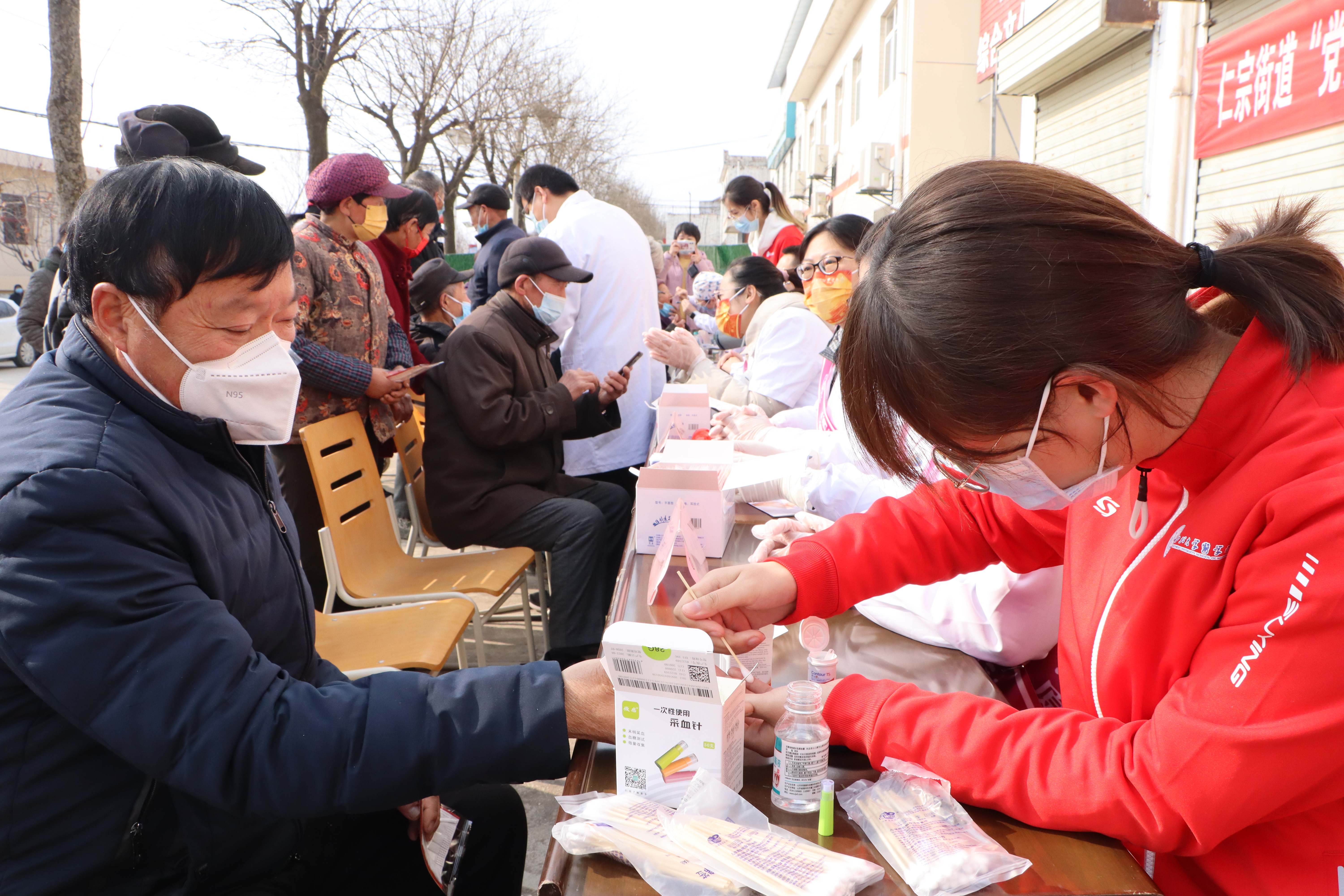 在活动现场,三家附属医院的重点专科专家、业务骨干以及永利集团88304官网临床医学生组成的志愿服务联队,在仁宗街办、庄王村驻村工作队的组织动员下,为辖区居民进行了系统、广泛的常见病治疗咨询、安全用药指导、健康知识讲座等现场服务,并集中开展了血压、血糖测量和监测指导工作,为辖区孤寡老人、双老家庭的健康生活质量保驾护航。