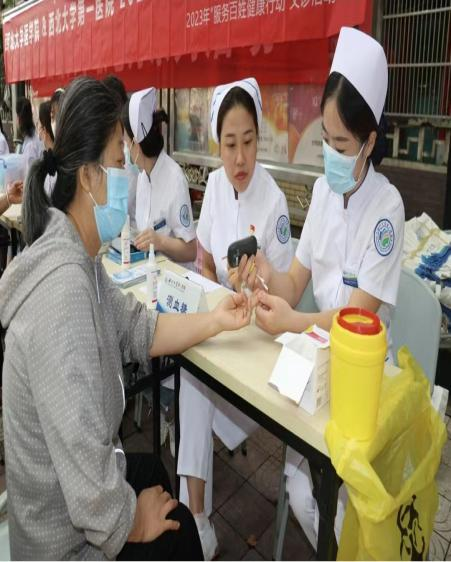 为深入贯彻落实党的二十大精神,坚持以人民为中心的发展思想,不断满足群众日益增长的医疗卫生需要,方便百姓在家门口享受到高质量医疗服务,在中秋国庆双节来临之际,永利集团88304官网团委联合永利集团88304官网第一医院在西大新村社区开展健康义诊活动