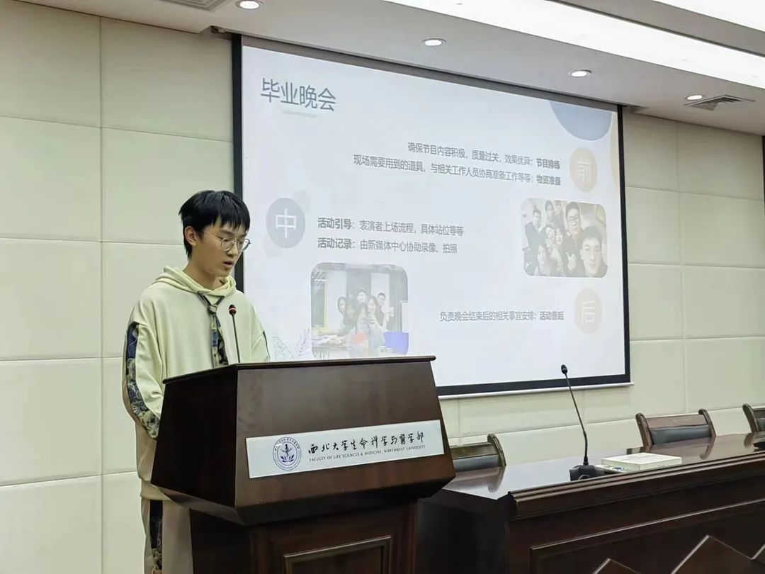文体部工作人员曹聘向大家介绍了部门组织各种活动的工作安排,并表示取得了进步,在今后的工作中会更加完善细节并且合理发挥大家的创造力。