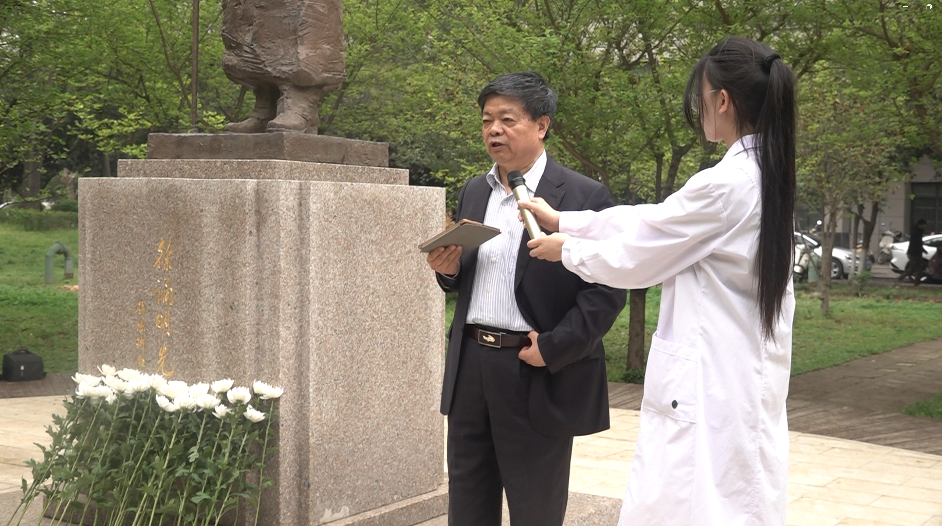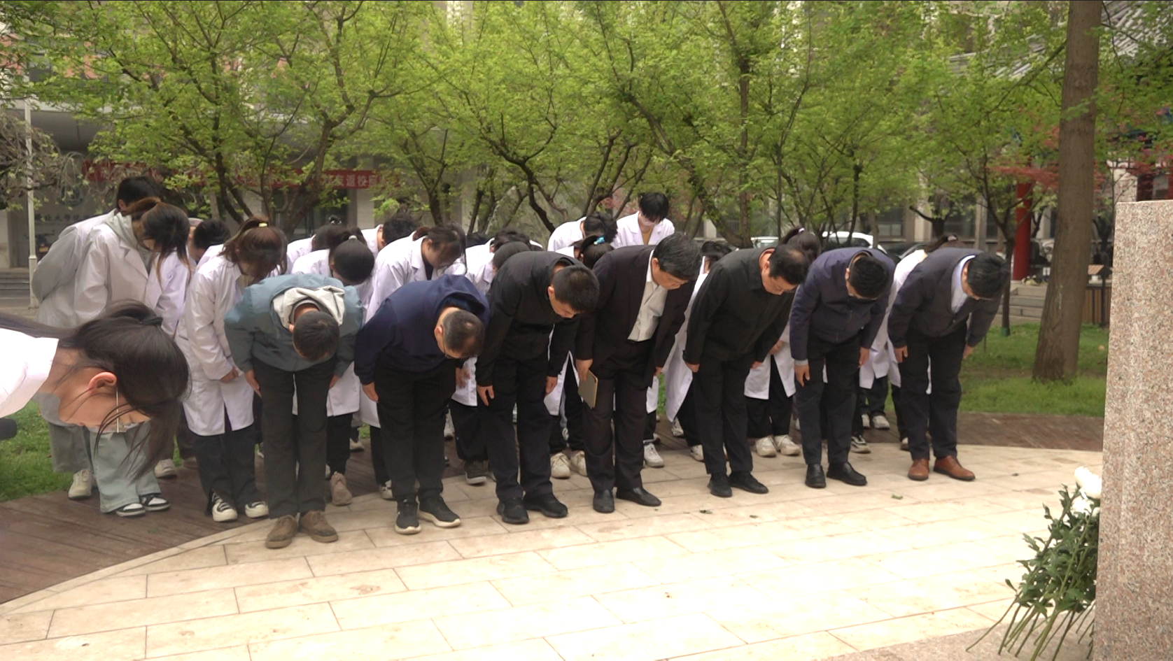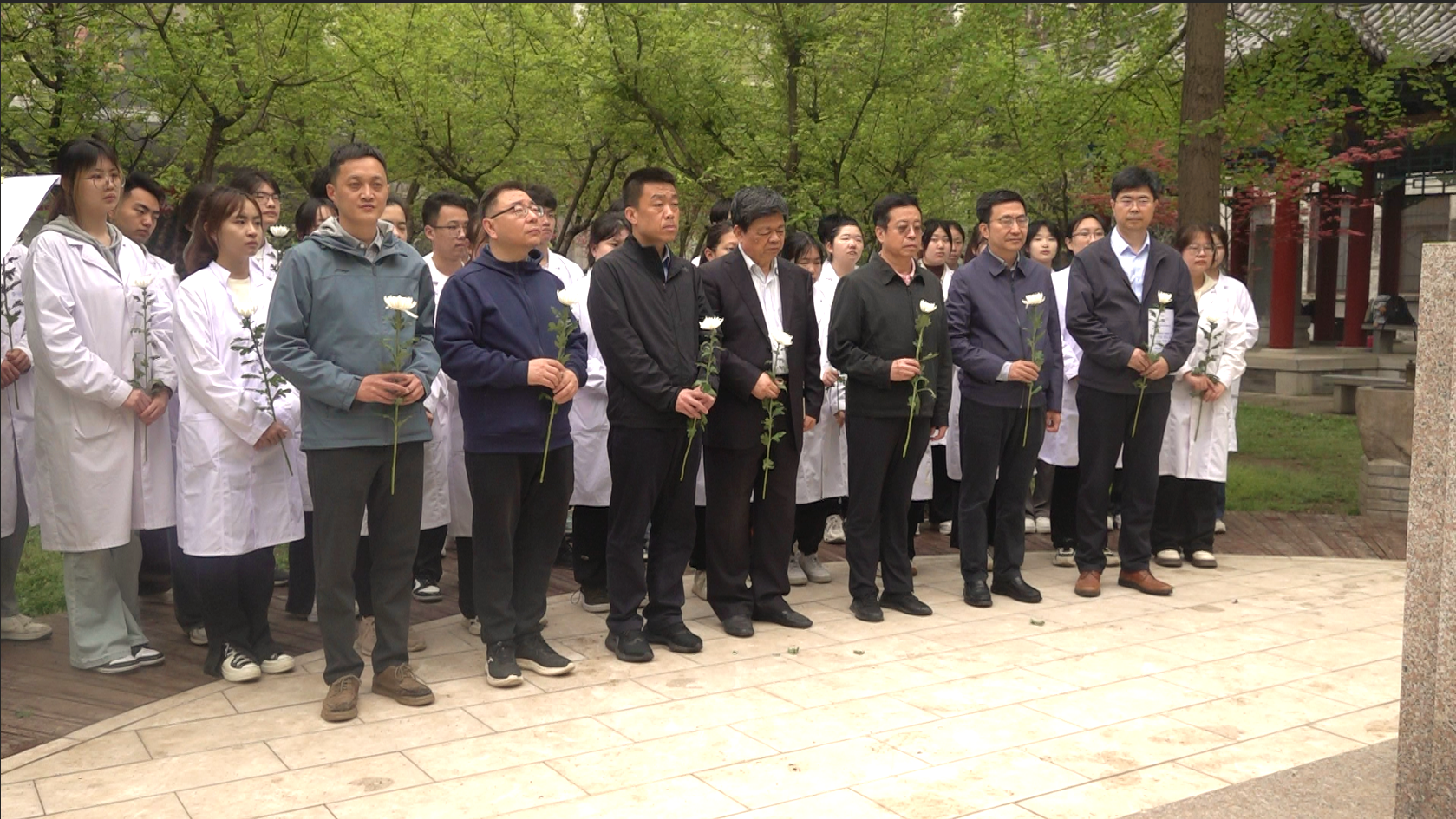 清明时节,小雨纷霏,全体师生心怀崇敬之情,向徐诵明先生敬献花束,鞠躬敬礼,向先生表达最深切的敬意。庄重肃穆的氛围让在场师生不禁想起当年医学先驱“医人救国、精诚济世”的传奇故事。