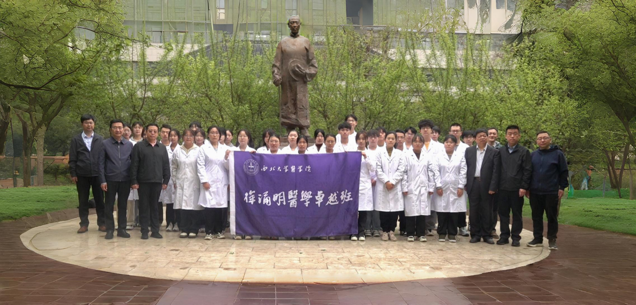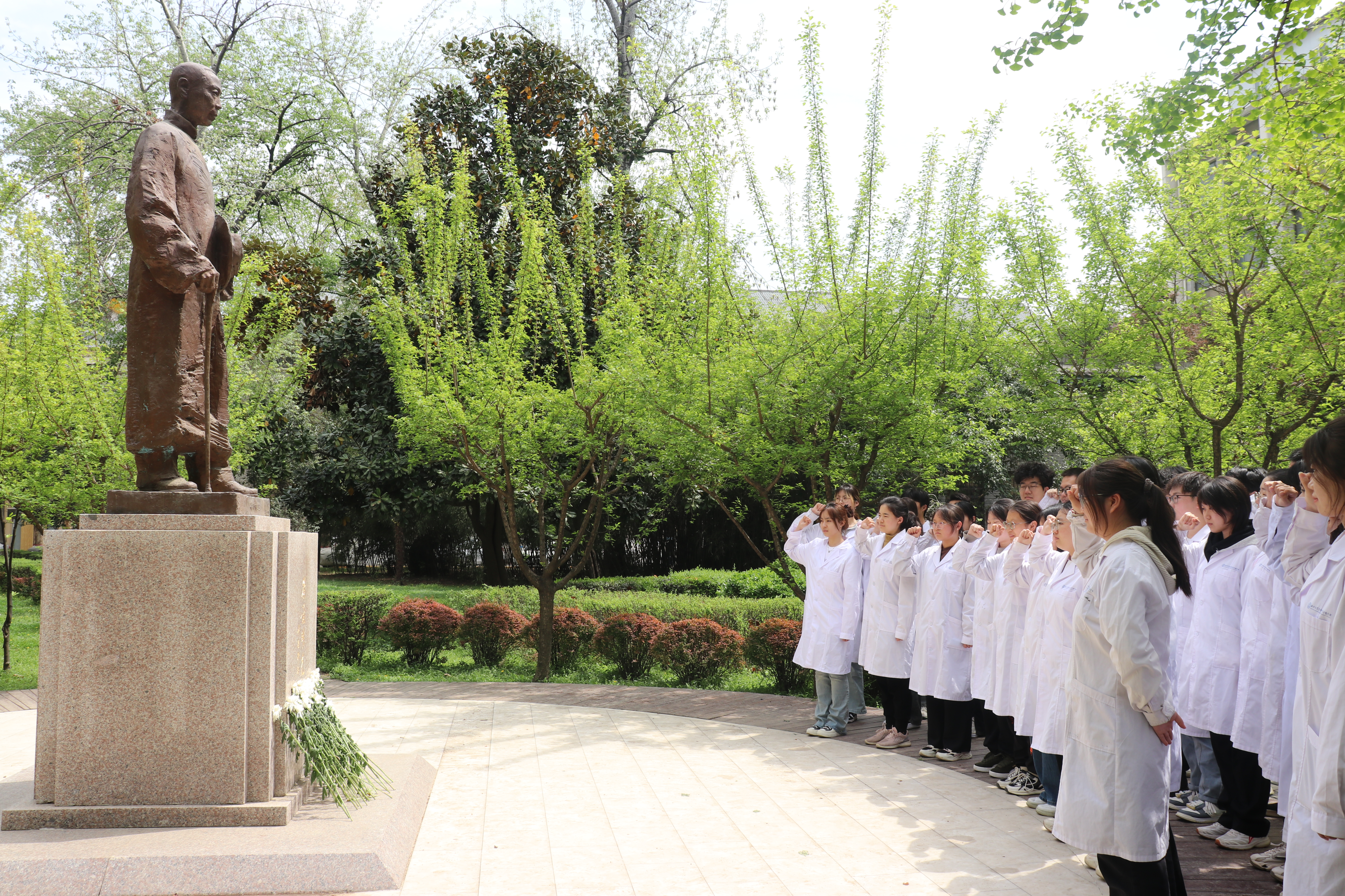 4月2日,永利集团88304官网师生代表齐聚在徐诵明先生铜像前,开展“追思先贤,传承医道”纪念活动,缅怀先贤师长、中国病理学的奠基人、西北高等教育的奠基者——徐诵明先生。西北联大与大学文化研究院院长姚远教授、永利集团88304官网党政班子、病理教研室闫庆国教授、2022级“徐诵明医学卓越班”班主任田晔教授以及临床医学专业学生共同参加了活动。