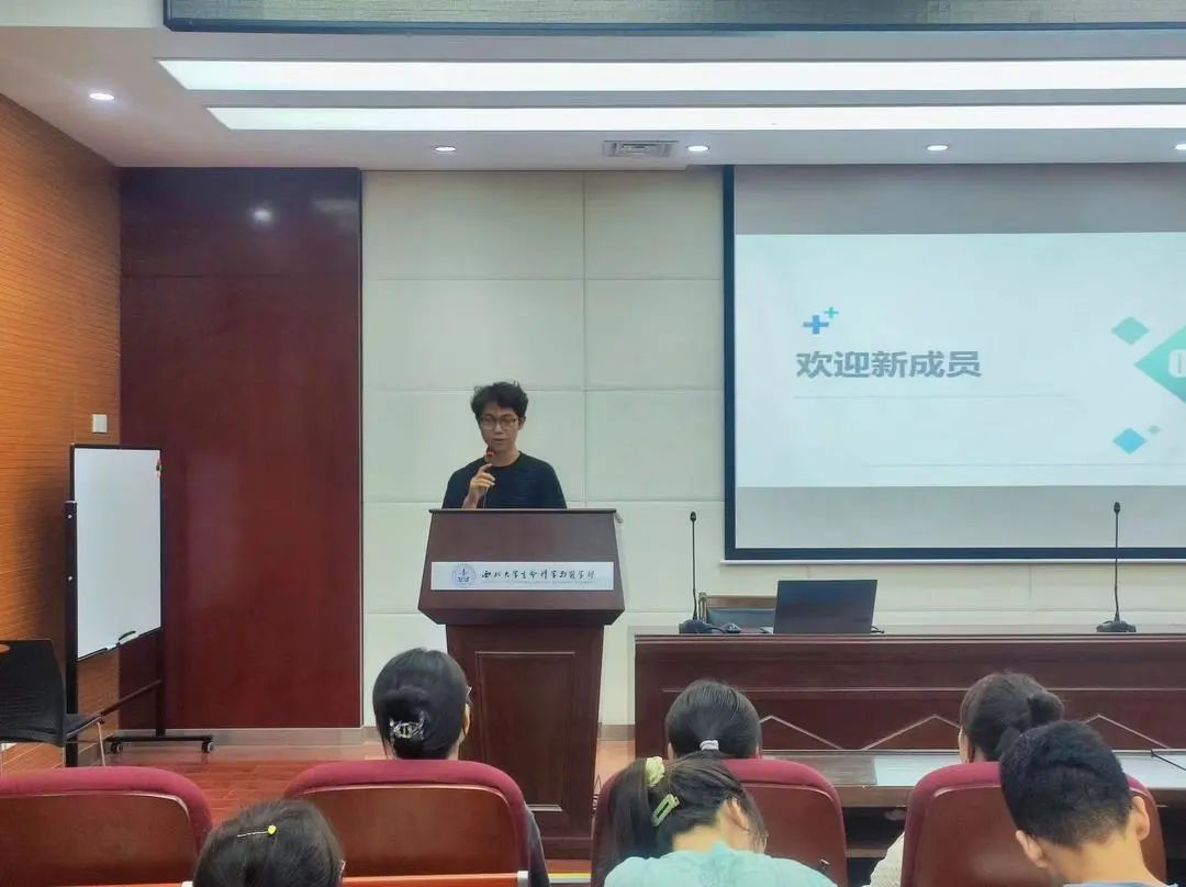 组织建设部工作人员肖宇阳总结了前期组织建设部的工作情况,并对十月的工作计划进行展望。他期待志愿者们可以在学生会这个家庭里找到乐趣、增进本领、锻炼品格,为同学们树立良好的榜样。