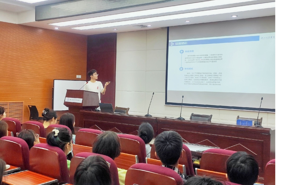 学生会主席团成员姚梓涵从讲解学生会的报账工作流程切入,希望通过此次培训,加强各成员对学生工作流程的规范意识,保证工作质量,提高工作效率。