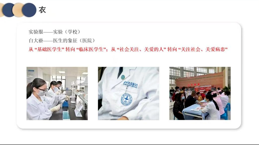 ②“4”—衣食住行。王利玮学长从这四个方面全方位地向同学们介绍了学校生活与医院见习生活的不同之处。他认为,在校的学习相较于临床学习生活而言缺少了实践的部分,因而如何在进入临床学习后,迅速找到从基础向临床转换的方法并且把握平衡又是一个具有挑战性的问题。 ③“3”—医学大家的人生感悟。医学是为了缓解人类病痛而成立的学科,医生的目标即帮助病人重寻健康。这份工作既是伟大的,也是崇高的,同时这也意味着我们需要增强自己的理想信念,努力成为医德高尚、医术精湛、服务人民群众的卓越医生。