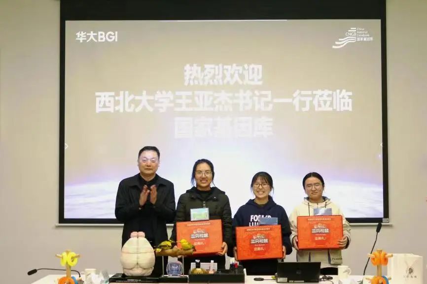 座谈会后,王亚杰与华大互相赠送了礼物,吴振磊为在华大基因工作的92级校友杨爽,10级校友闫承彬、蒙俊烨、余楠,18级校友姜琳赠送校庆纪念品,向校友对母校的关心和支持表示感谢。陈富林为第二届华大创新班学生代表赠送新年礼物,鼓励学生充分利用联合培养的新机制、新平台,学习真本领,练好基本功。