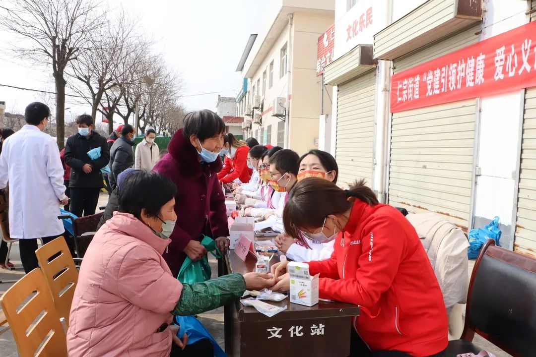 在活动现场,三家附属医院的重点专科专家、业务骨干以及永利集团88304官网临床医学生组成的志愿服务联队,在仁宗街办、庄王村驻村工作队的组织动员下,为辖区居民进行了系统、广泛的常见病治疗咨询、安全用药指导、健康知识讲座等现场服务,并集中开展了血压、血糖测量和监测指导工作,为辖区孤寡老人、双老家庭的健康生活质量保驾护航。