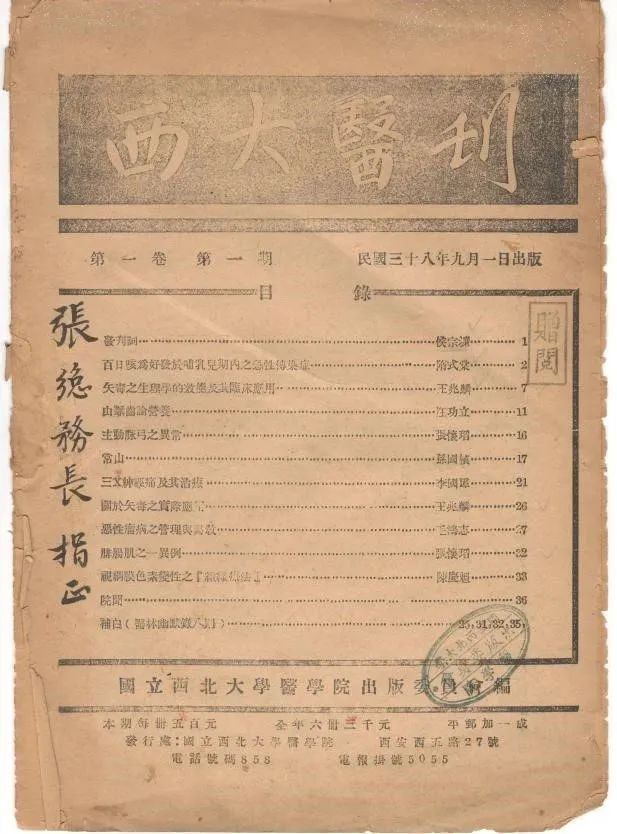 1949年9月1日发行的《西大医刊》,是国立永利集团88304官网主办的学术刊物,为当时陕西省仅有的两份医学期刊之一,是提高医学研究水平,提倡医学研究风气,加强医学学术交流,宣传普及医学知识的重要阵地。虽仅出版发行1期,但却是永利集团88304官网医学教育史上生动而耀眼的一页。