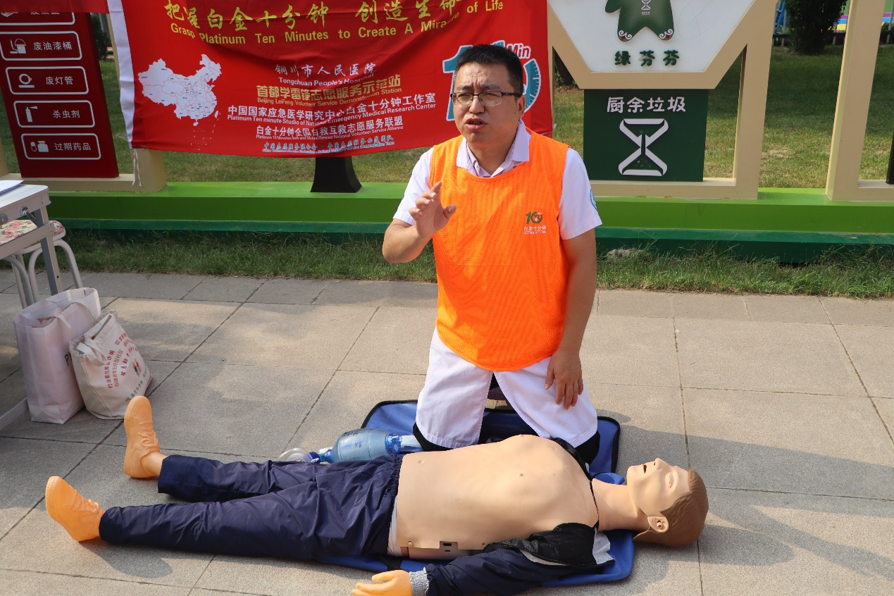 团队成员积极协助铜川市人民医院的“白金十分钟”急救知识宣传小组,向社区诊所的医生和社区居民开展急救知识实践教学,演示心肺复苏和海姆立克急救法的正确操作,并强调对于不同年龄的人群,应采取的不同急救策略。
