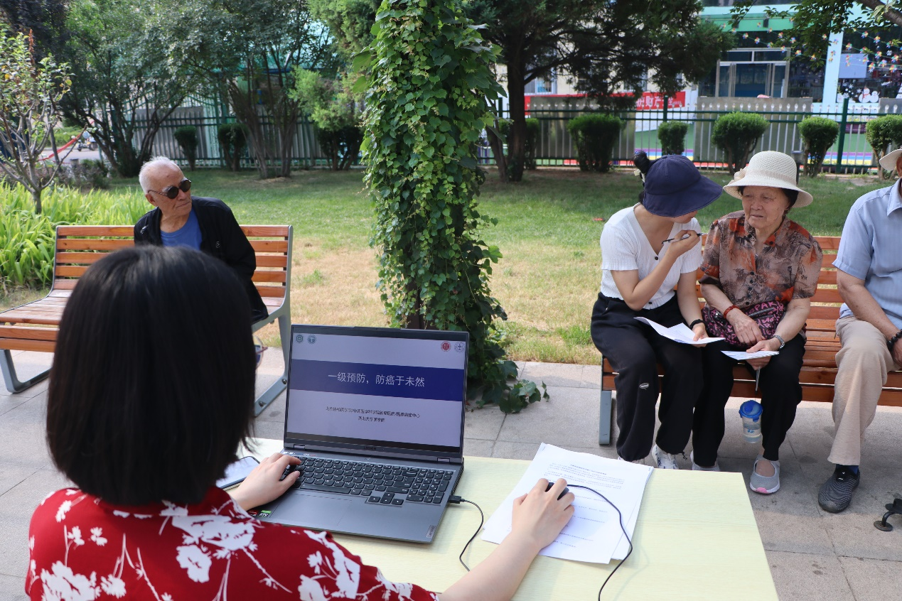 针对我国西北地区癌症健康素养低、陕西省的健康素养相关数据欠缺等情况,团队成员专门在社区内设立肿瘤防治宣教点,为社区居民进行肿瘤防治知识科普讲座,并向社区居民及过往行人发放有关癌症预防、早癌筛查、癌症治疗、急救措施等知识的科普宣传手册。同时,以《全国居民癌症防治核心知识知晓率调查表》为调查工具,对社区居民癌症防治核心知识知晓率进行调查,收集到了宝贵的数据