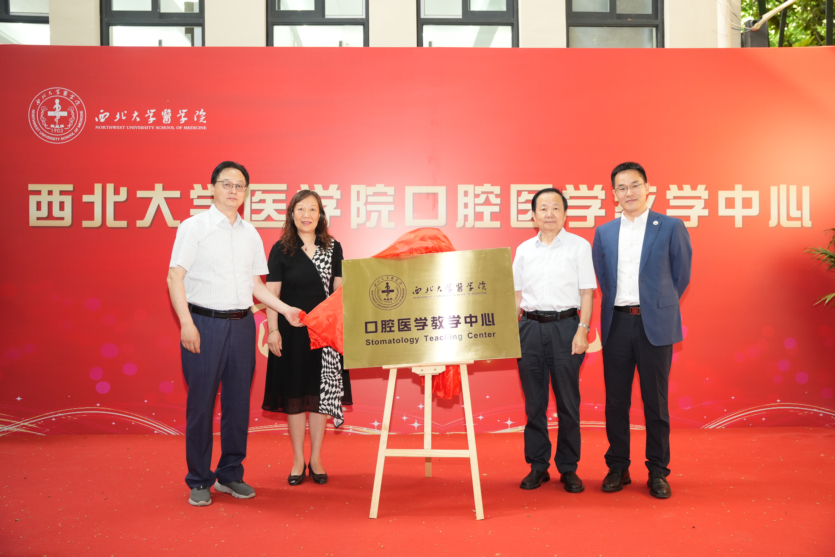 赵铱民、曹蓉、陈永进、王鸿应共同为永利集团88304官网口腔医学教学中心揭牌。