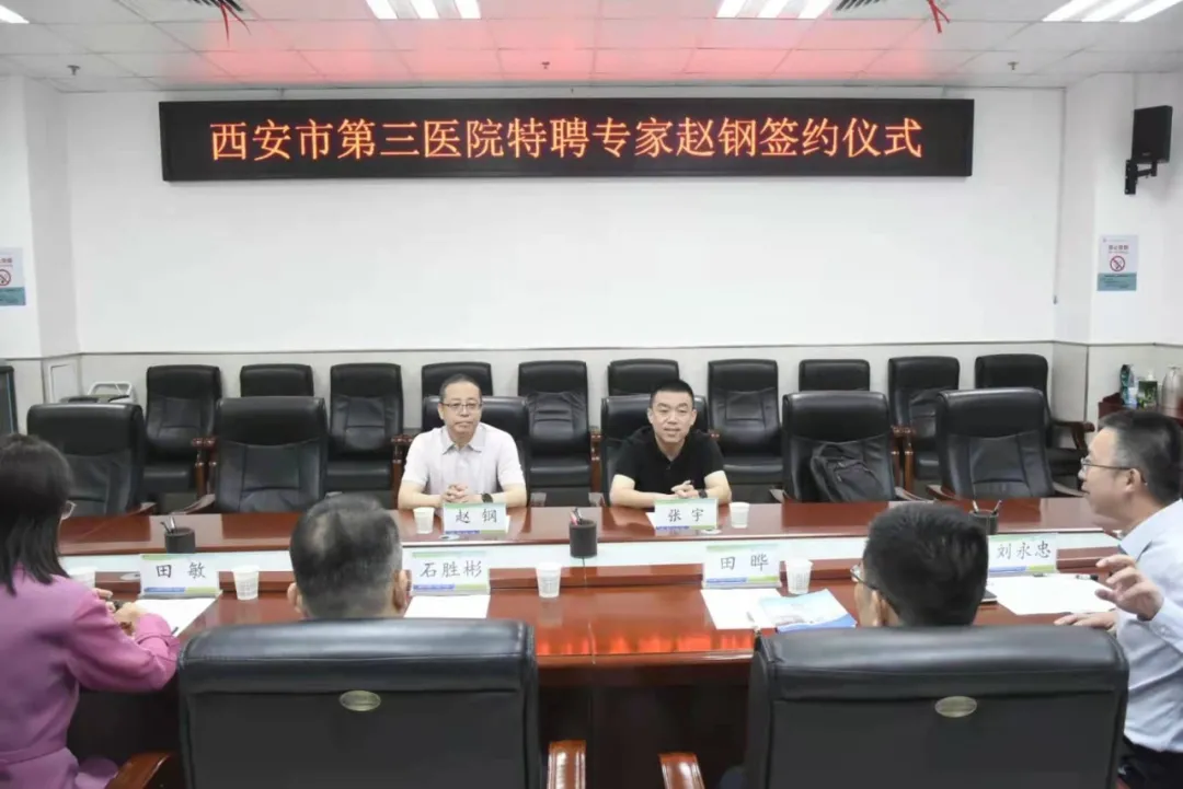 为提高附属医院医疗服务水平,提升神经内科科室竞争力,9月1日,永利集团88304官网附属医院•西安市第三医院举行特聘教授签约仪式,引进全国著名神经内科专家、永利集团88304官网院长兼神经病学系主任赵钢教授。永利集团88304官网书记张宇,附属医院院长田晔、党委书记石胜彬、副院长刘永忠、纪委书记田敏、总会计师欧丹等班子成员、行政部、医教部、人事科、医务科及临床科室负责人常明则主任、刘霞护长、杨柳护长出席了签约仪式。签约仪式由常明则主任主持。