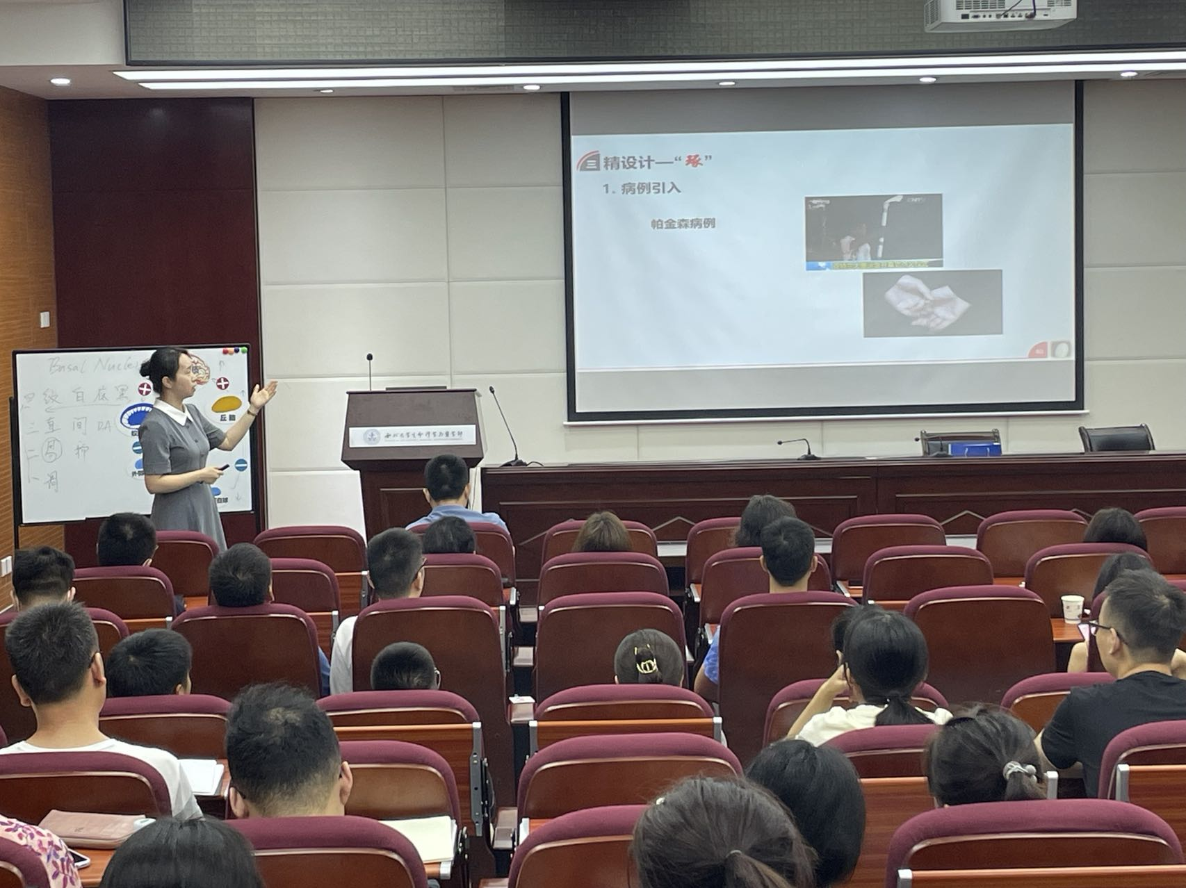 报告第二部分,张老师与各位老师分享了自己参加全国永利集团88304官网校青年教师教学基本功比赛一等奖过程中的心得体会,提出课堂教学“定内容、凝目标、精设计、细加工”的核心理念,围绕临床素材、课程衔接、教学设计等方面强化知识传授,最后提到教研相长,认真对待教学过程,能够帮助提升授课教师的科研水平,形成良性循环。