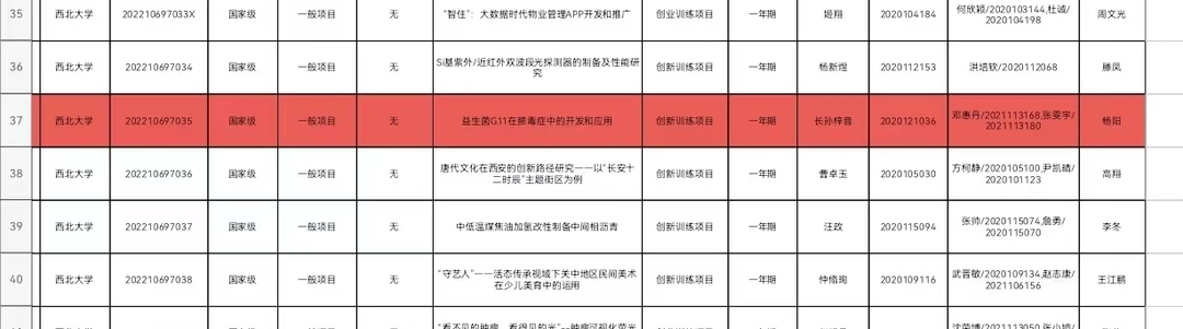 国家级项目《益生菌G11在脓毒症中的开发和应用》(项目组成员:长孙梓音、邓惠丹、张雯宇,指导教师:杨阳)