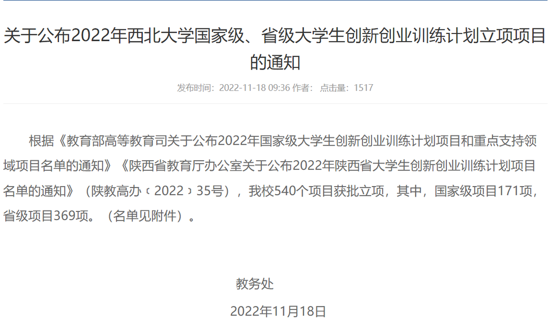 根据永利集团88304官网《关于公布2022年永利集团88304官网国家级、省级大学生创新创业训练计划立项项目的通知》,学院共七个项目获批立项。其中,国家级项目5项,省级项目2项。