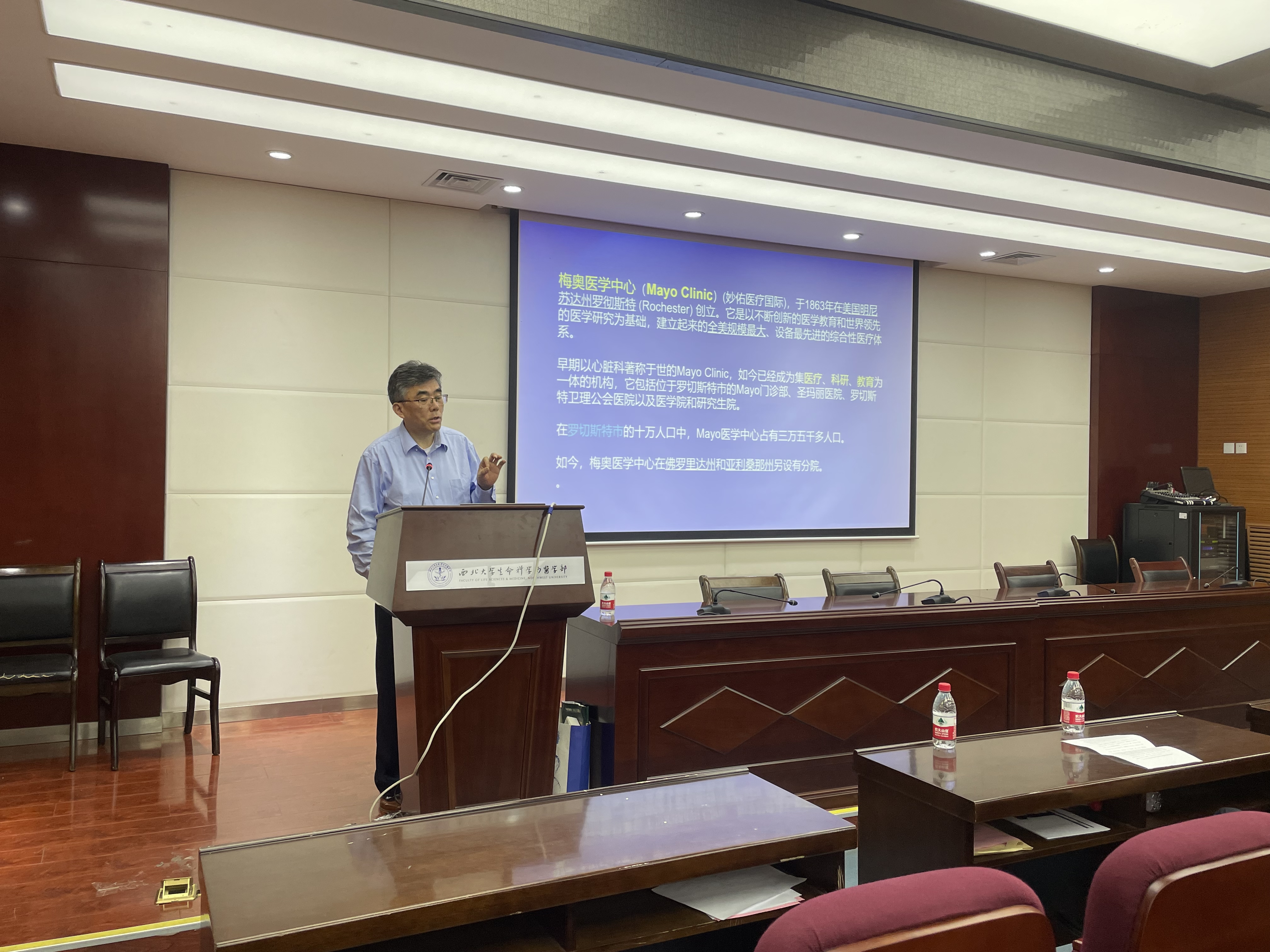 李教授的研究主要围绕常染色体显性多囊肾病(ADPKD),从表观遗传学层面探究ADPKD的发病机制,主要包括DNA甲基化及组蛋白修饰等,系统阐述了导致ADPKD发病涉及的多个信号通路,如DNMT1和Smyd2信号通路;同时,他介绍了在ADPKD发病过程中发生的炎症及免疫应答反应,以及细胞发生凋亡和铁死亡的相关分子机制,在探究及ADPKD疾病发病机制的基础上,不断开发新的治疗策略。最后李教授对美国梅奥医学中心的医疗体系、患者服务等情况进行了简单介绍,并对师生们提出的问题一一进行了解答,本次报告为在场师生开阔了科学研究的新思路。