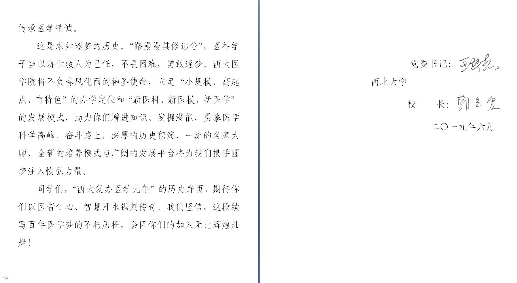 (编者按:2019年6月初,高考结束后第一时间,校党委书记王亚杰与校长郭立宏共同致信即将志愿填报到我院的2019级首届医学专业同学,以下为正文内容)