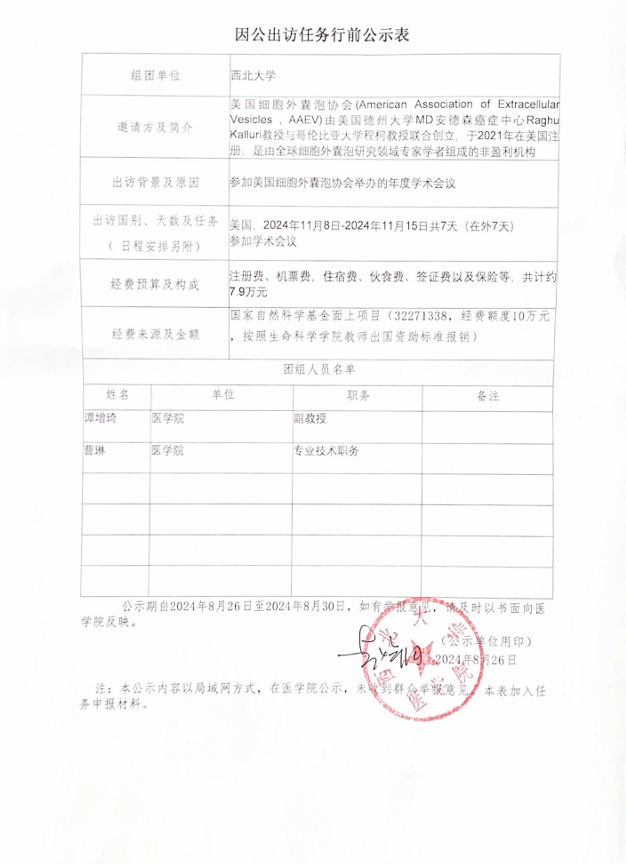 因公出访任务行前公示表