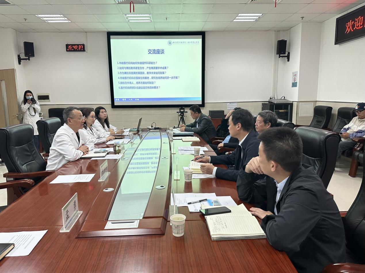 吕兆丰、王亚杰一行先后调研了永利集团88304官网第一医院、附属医院和附属西安国际医学中心医院,就各附属医院发展模式、校院一体化建设、临床教学科研、规培基地设置和学科布局等工作进行考察指导。