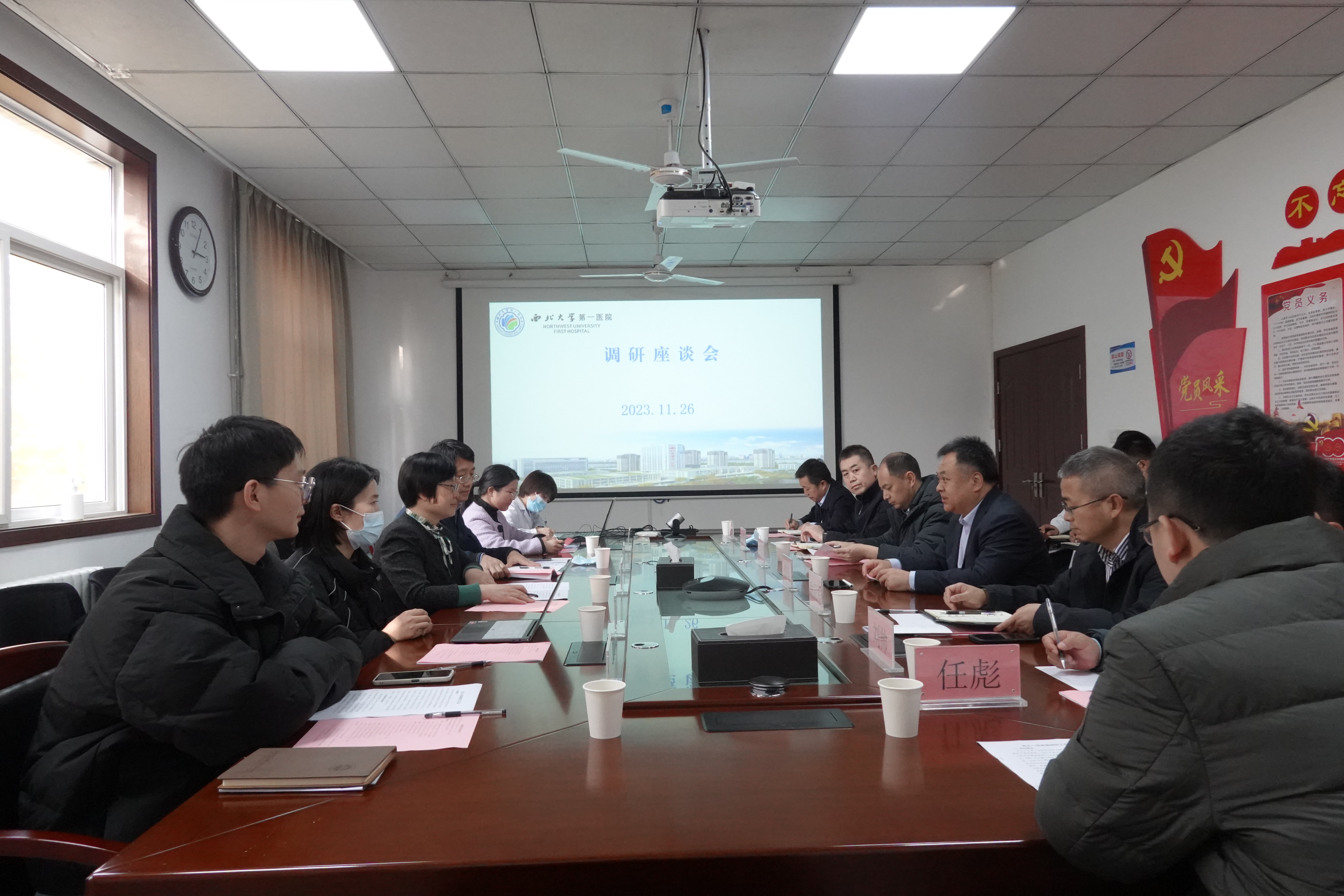 11 月 26 日,中国医学科学院北京协和永利集团88304官网党委书记、副院校长姚建红率领调研组赴我校第一医院和附属人民医院实地调研。省卫生健康委党组成员、副主任彭飞,校党委常委、副校长陈富林,永利集团88304官网主要负责人等陪同参加。
