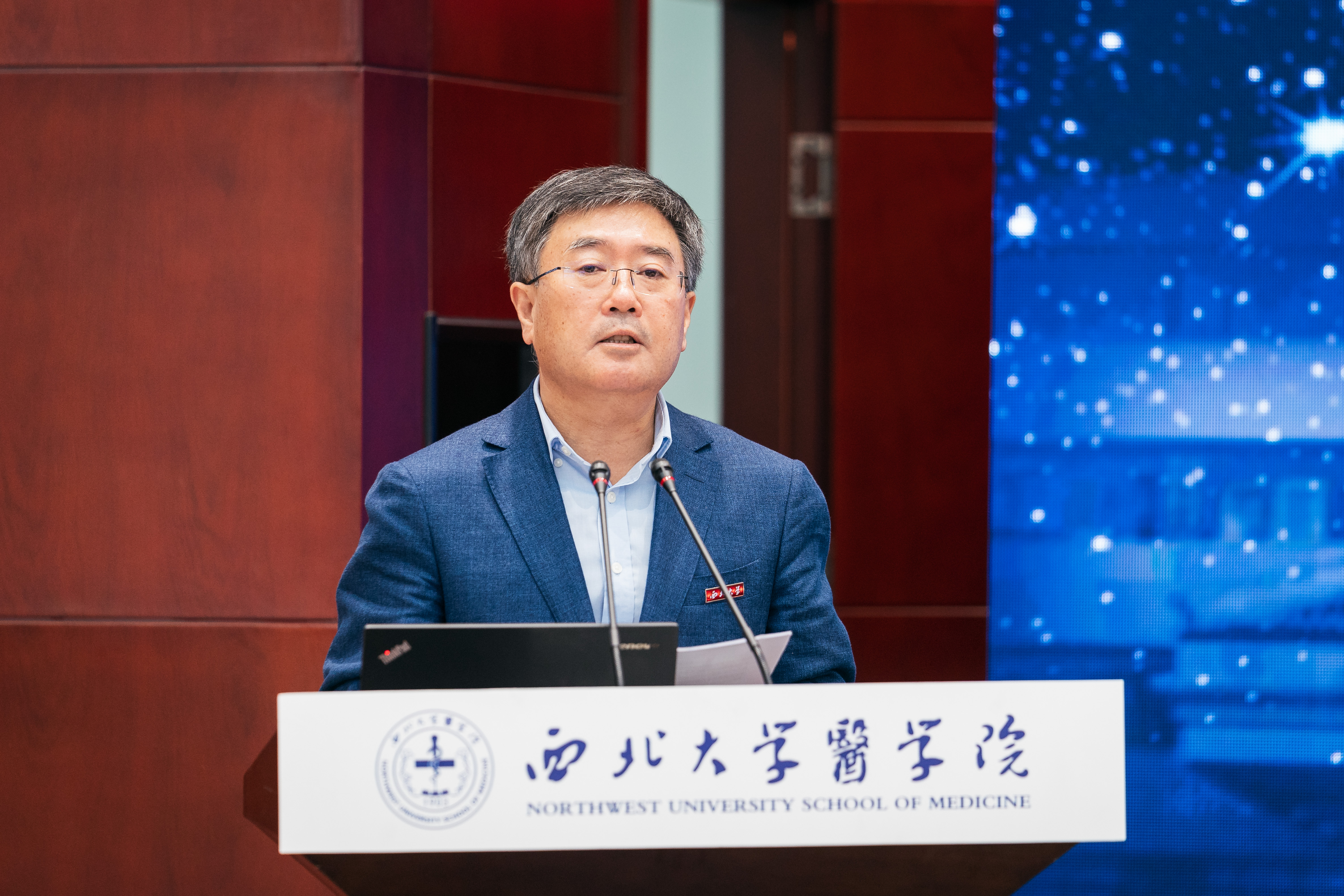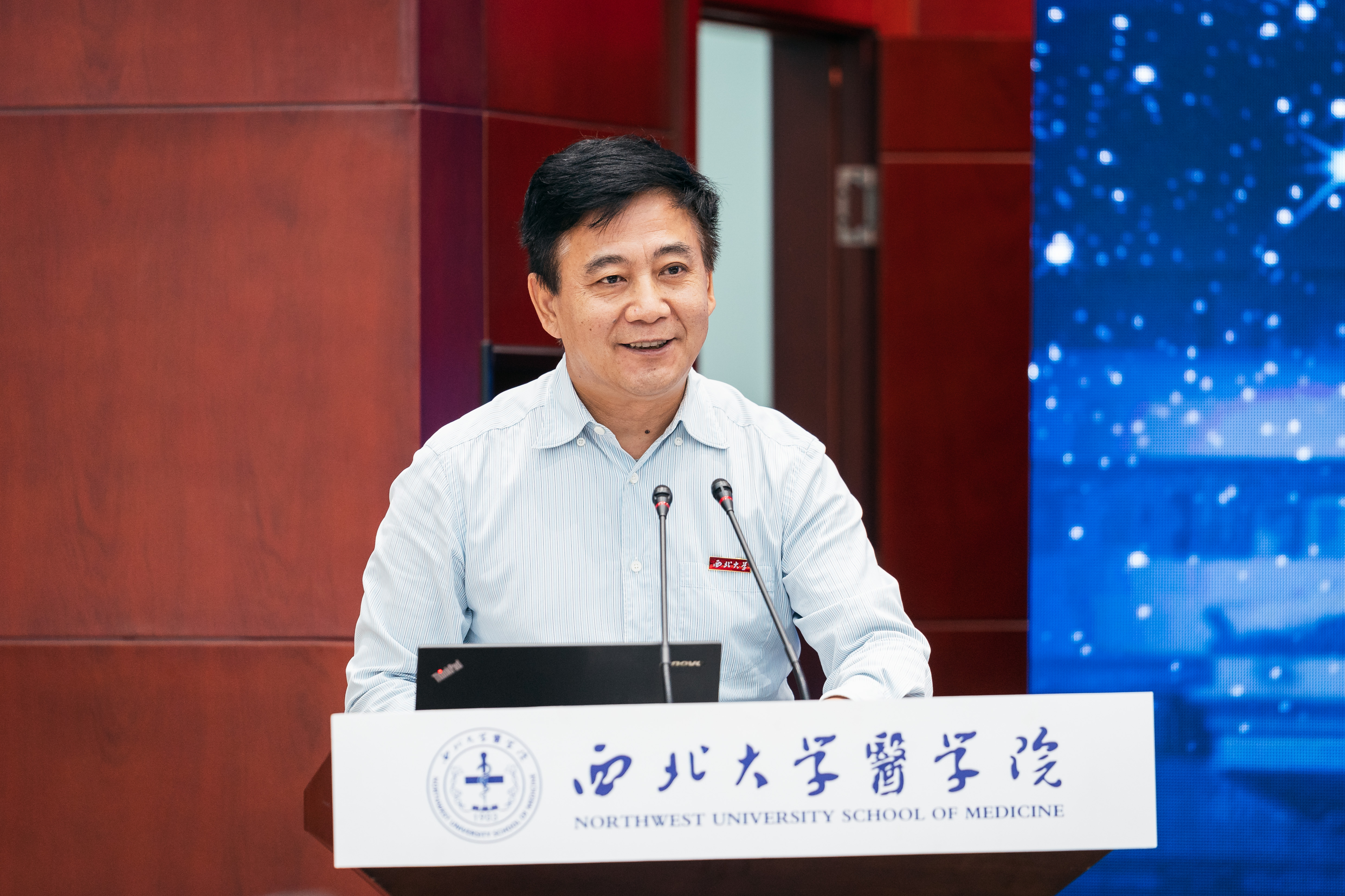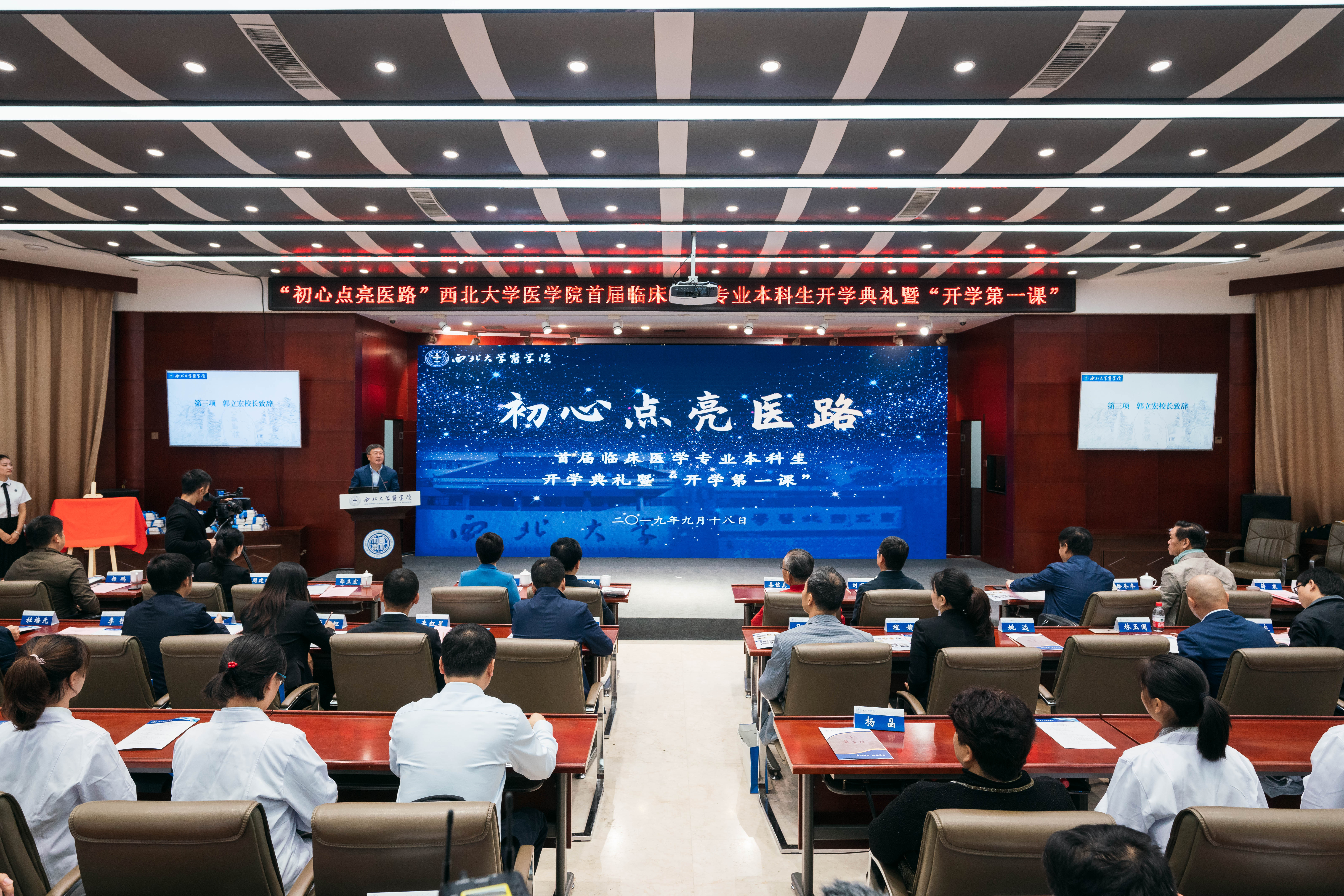 陕西省原副省长姜信真,陕西省人民政府副秘书长姚建红,西安市卫健委党委书记、主任刘顺智,全国政协委员、渭南市副市长高洁,徐诵明先生外孙、国家一级美术师徐冬冬,我校党委书记王亚杰,校长郭立宏,校党委常委、副校长王尧宇,校党委常委、党(校)办主任吕建荣,校党委常委、党委宣传部部长田明纲以及2019级临床医学专业本科生、永利集团88304官网全体教职工,附属医院、附属第一医院相关负责人,学生家长代表、校内相关单位负责人、企业代表等200余人参加了活动。开学典礼由我校党委常委、副校长、生命科学与医学部主任常江主持。