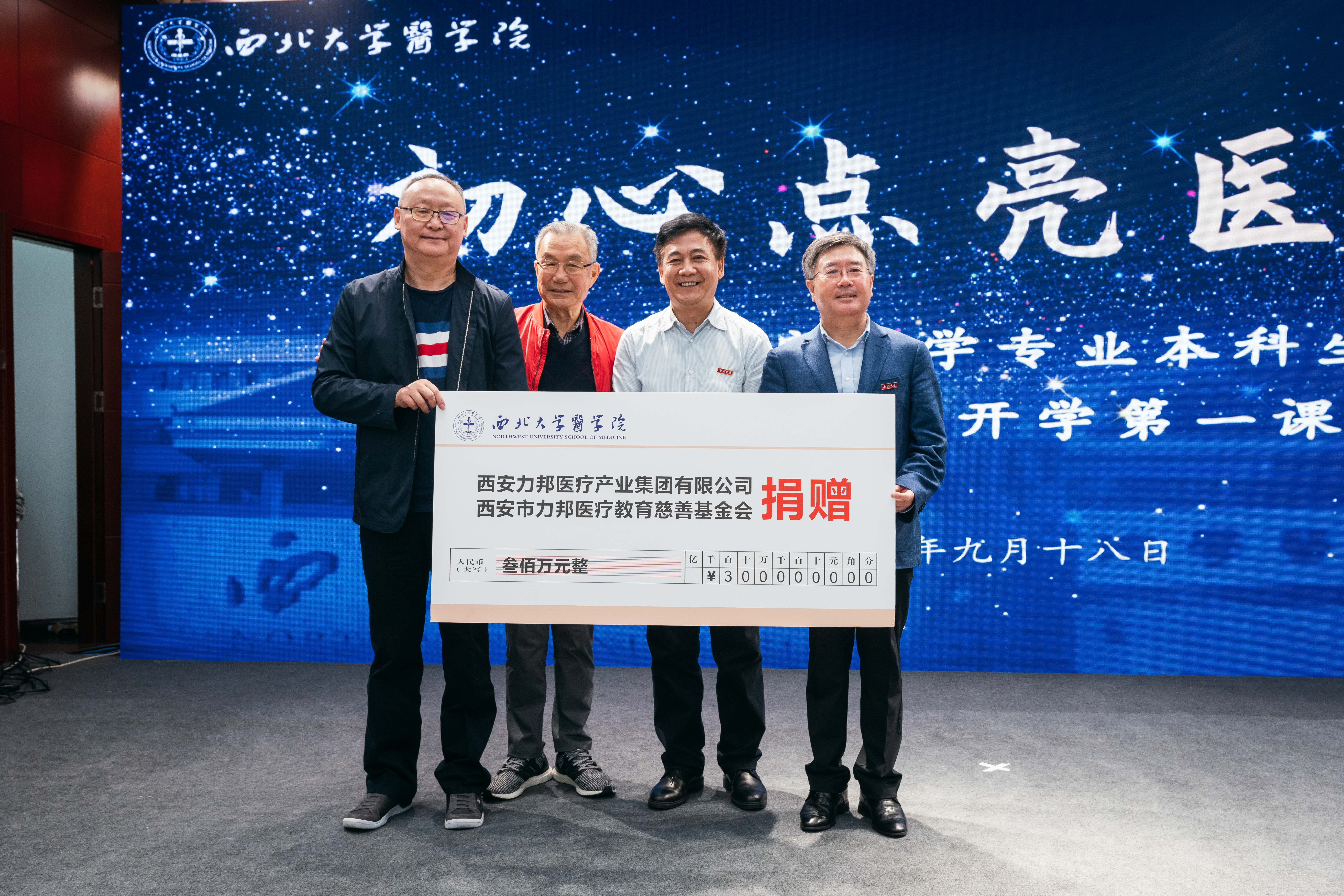 周建玲总裁代表西北国际医疗集团出资500万人民币设立医学共建基金支持永利集团88304官网发展,李檀董事长代表西安力邦有限公司捐赠300万人民币作为永利集团88304官网建设基金。