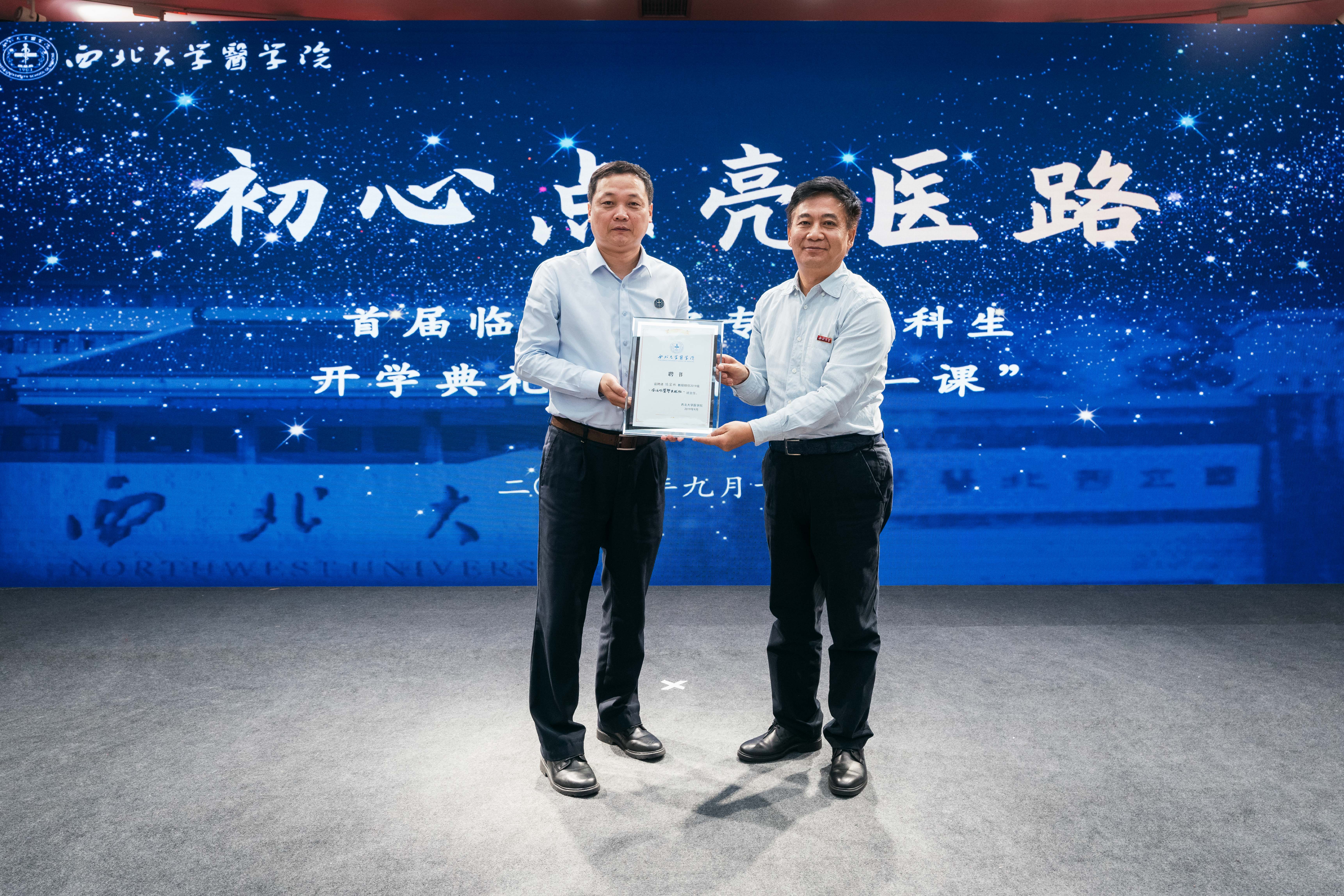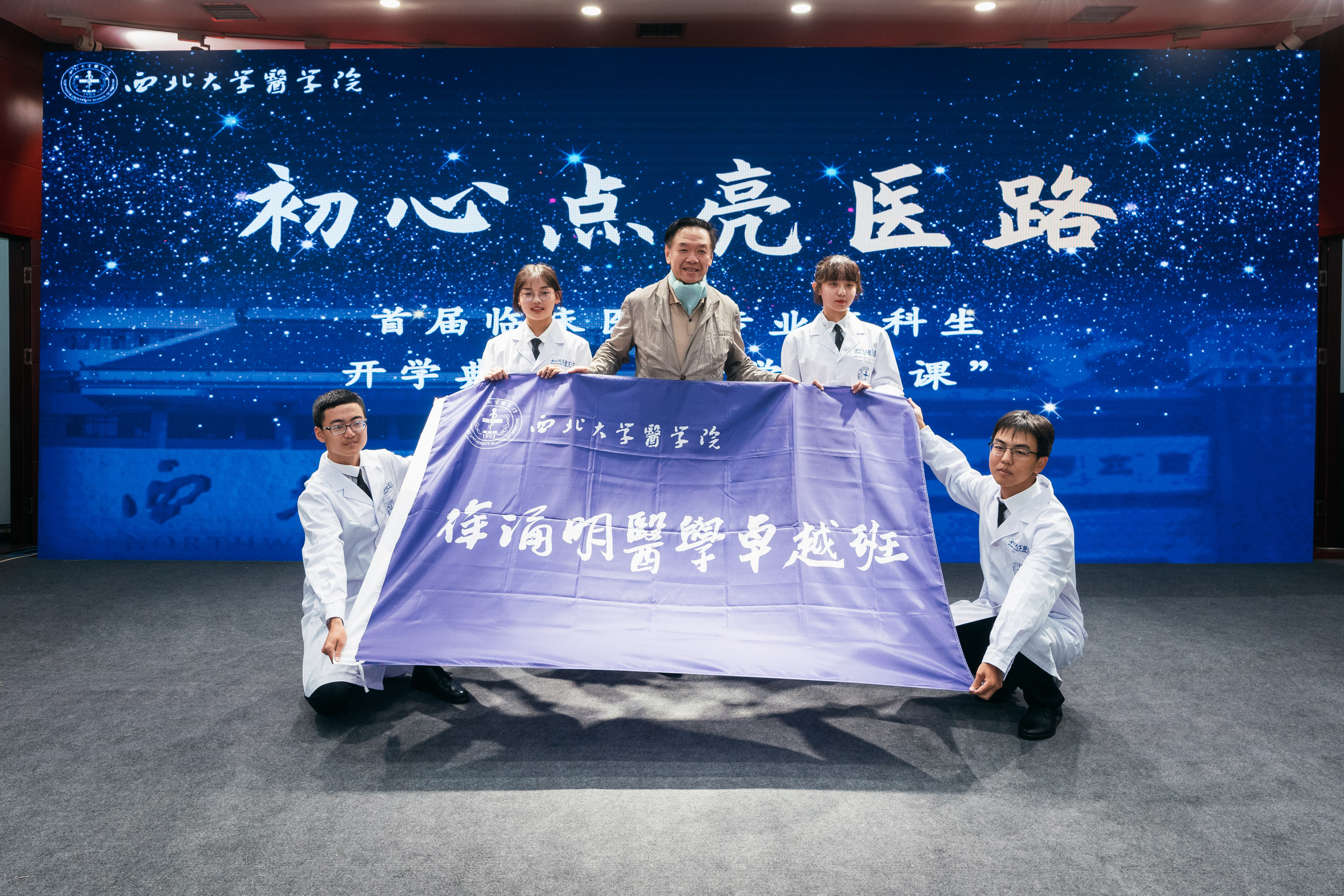 徐冬冬向“徐诵明医学卓越班”授旗并致辞。他介绍了外祖父徐诵明在现代病理学领域的成就及其在主政西北联大时期的历史贡献。他说,“徐诵明医学卓越班” 的命名正是继承了徐诵明先生“医学救国、教育兴国”的崇高抱负。他表达了对永利集团88304官网复办医学的美好祝愿。