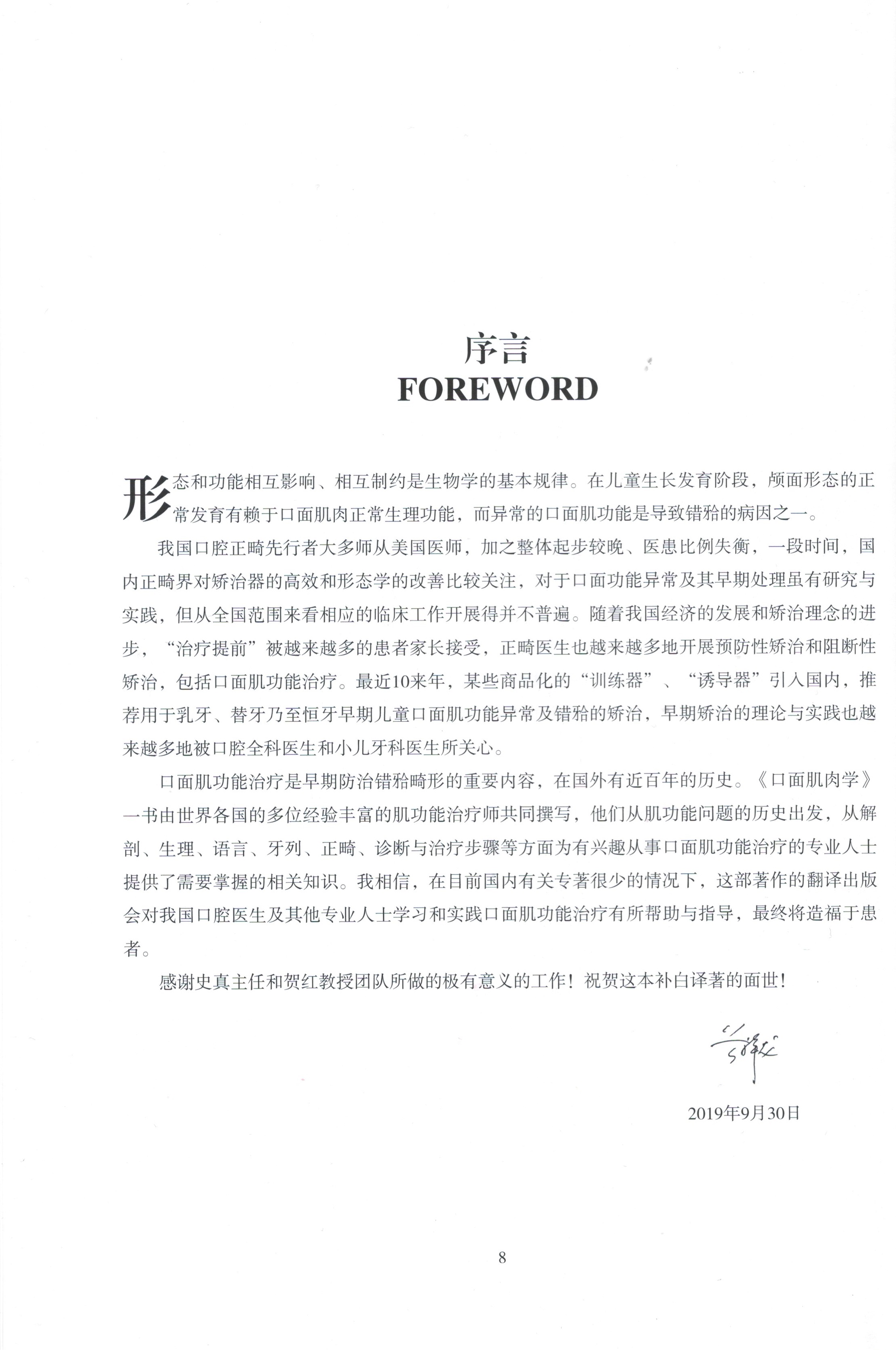 口面肌功能治疗是早期防治错畸形的重要内容,《口面肌肉学》一书由世界各国的多位经验丰富的肌功能治疗师共同撰写,从解剖、生理、语言、牙列、正畸、诊断与治疗步骤等方面详细阐述了口面肌肉学的历史、口面肌功能治疗涉及的多学科知识、肌功能治疗程序与方法,为学习和实践口面肌功能治疗提供指导和帮助。近年来越来越多国内口腔医生开始关注口面肌功能治疗,尝试在错畸形的早期防治与多学科联合治疗方面开展工作,但教材和资料缺乏一直是重要的制约因素。