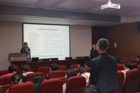 聘任仪式结束后,关锋教授主持永利集团88304官网创新论坛第九百九十四讲暨校庆118周年学术讲座,由常智杰教授为与会师生作题为“肿瘤发生中的基因转录作用”的学术报告,主要介绍人类肿瘤相关的一个新基因:CREPT,并提出了这一基因在促进肿瘤生长相关基因转录方面作用的一个新机制,这将为肿瘤的基因诊断和针对性基因治疗提供了参考。随后与师生探讨了研究技术相关问题,引起与会师生的热烈反响。