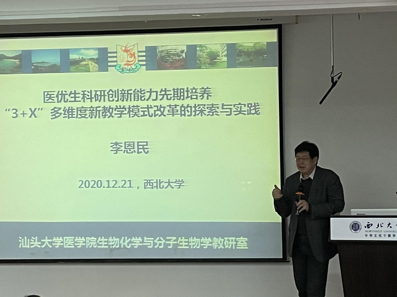 12月22日下午,汕头大学永利集团88304官网基础医学研究所所长,汕头大学永利集团88304官网生物医学研究中心主任,汕头大学永利集团88304官网生物化学与分子生物学教研室主任李恩民教授,为学部教师作了 “医优生科研创新能力先期培养“3+X”多维度新教学模式”的报告,报告由李方民副院长主持。