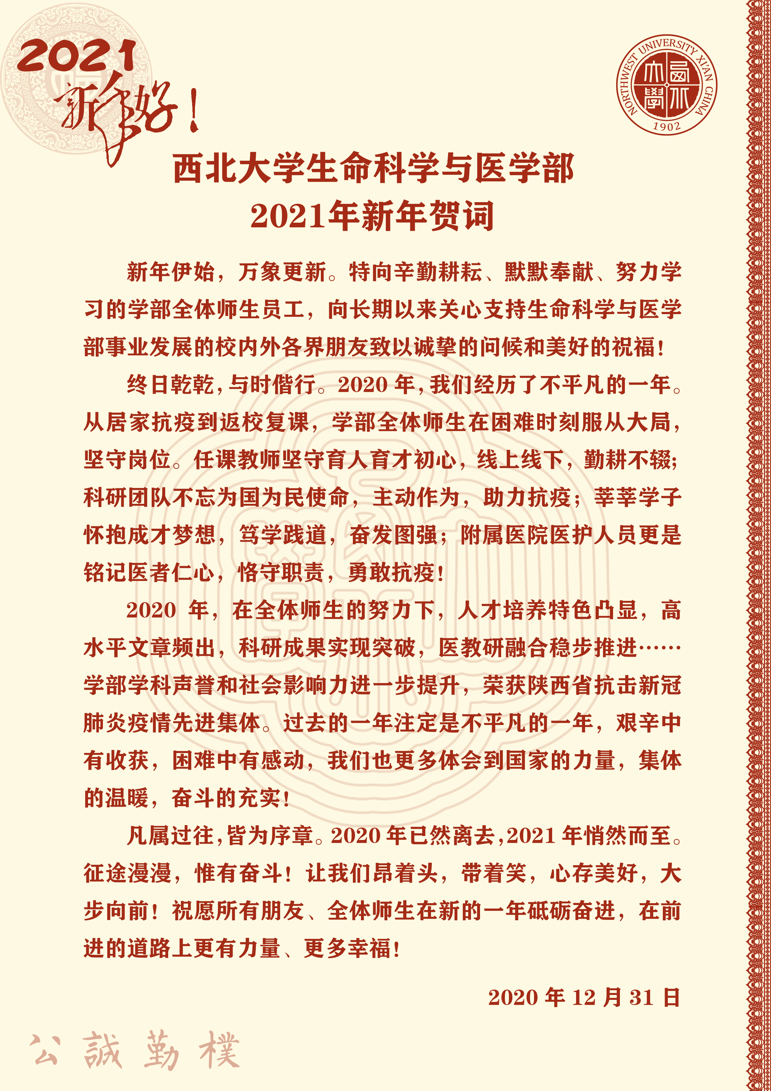 永利集团88304官网生命科学与医学部2021年新年贺词