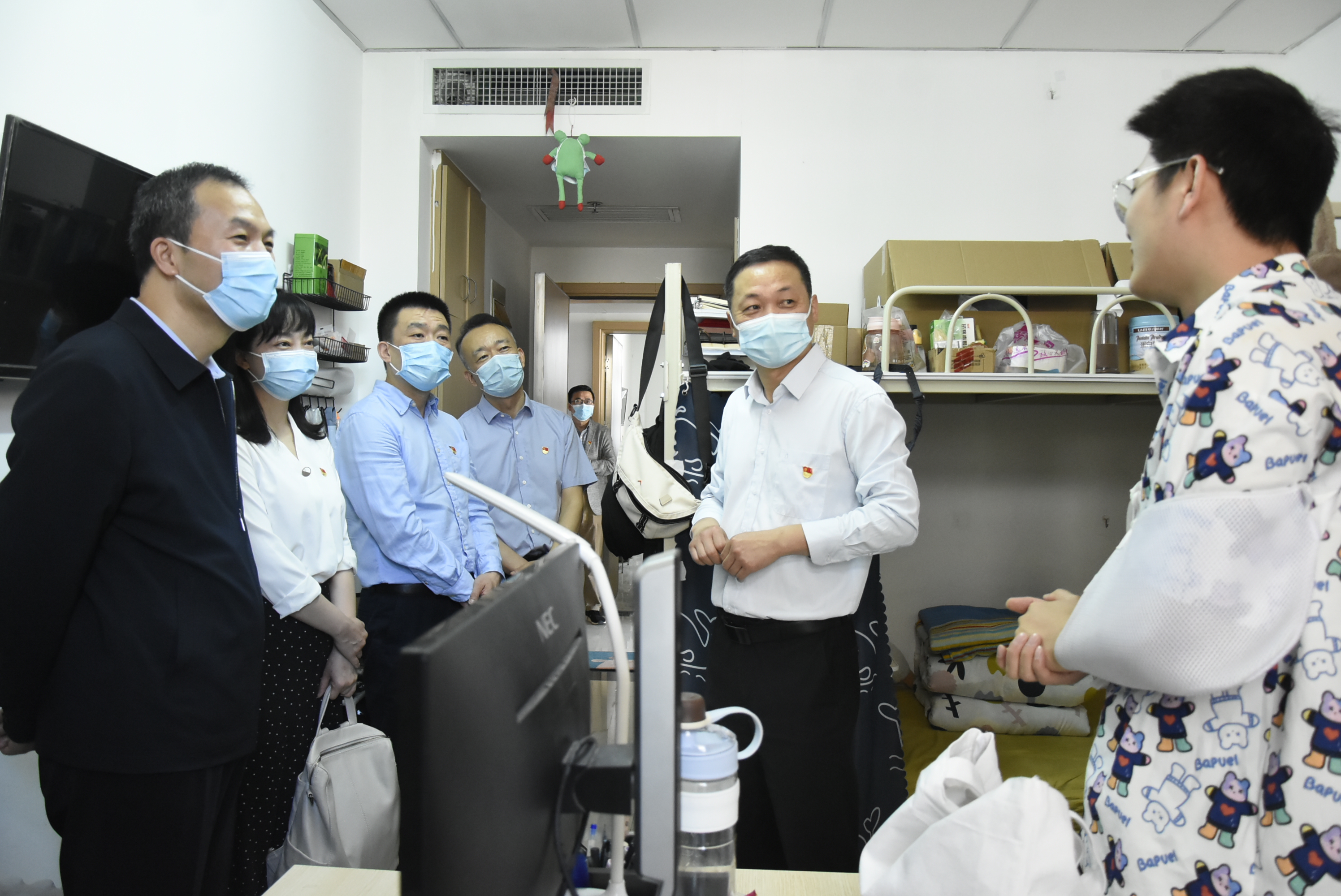 活动前,吕建荣、陈富林一行实地考察了附属医院诊断学实验室、临床技能培训中心、动物实验中心等教学场所,并到学生宿舍慰问青年学生。