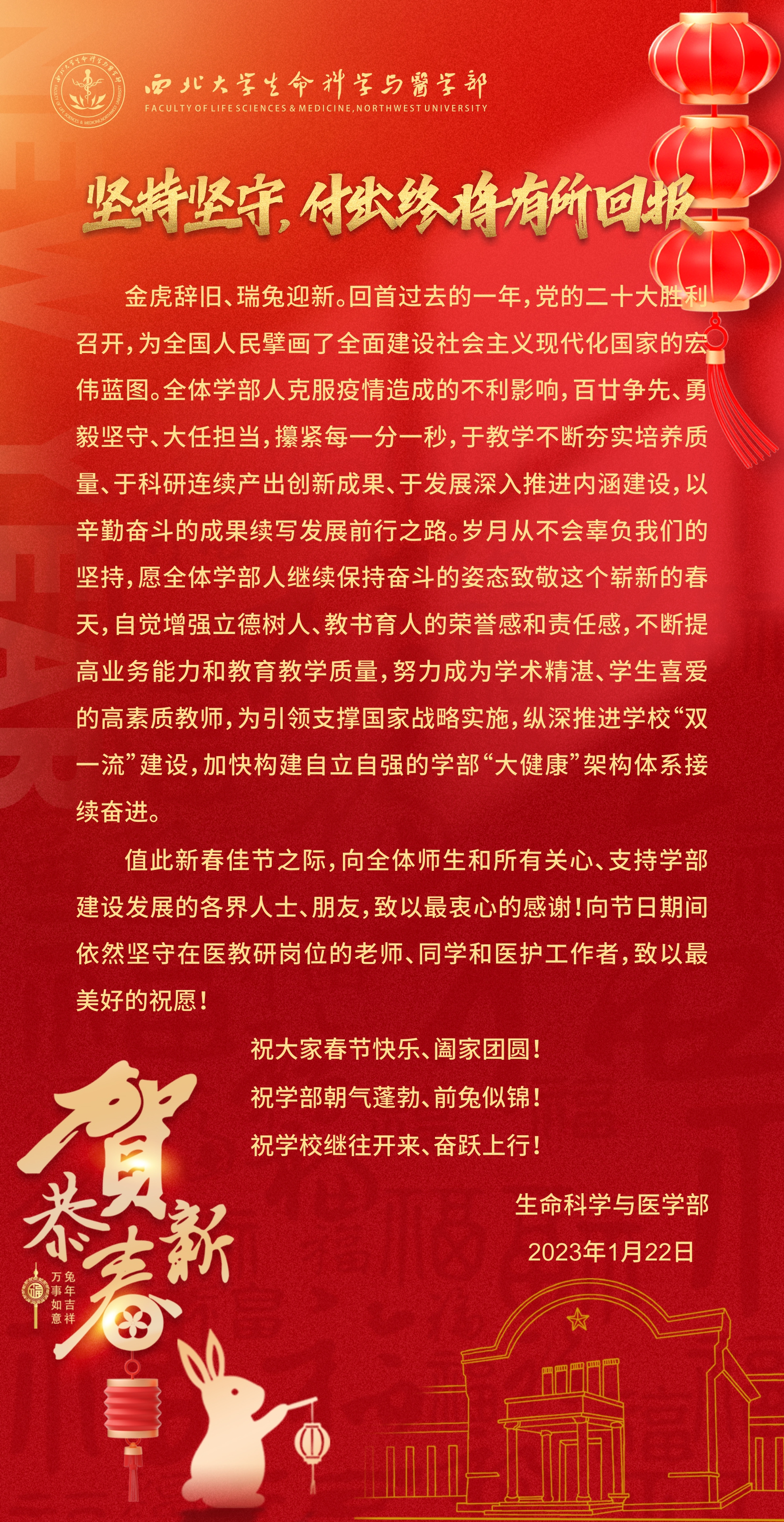 坚持坚守,付出终将有所回报--NWU生命科学与医学部恭祝新春!