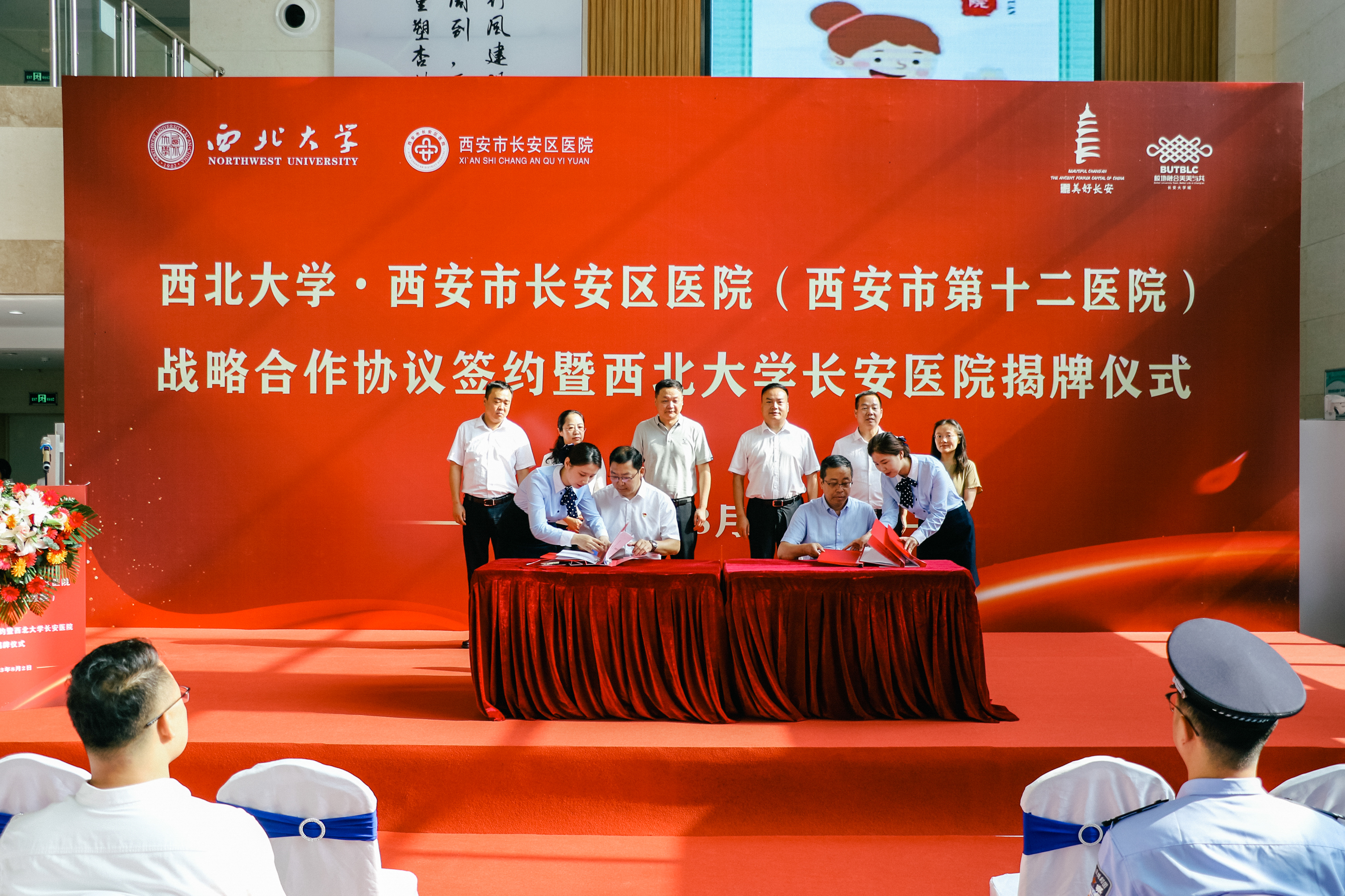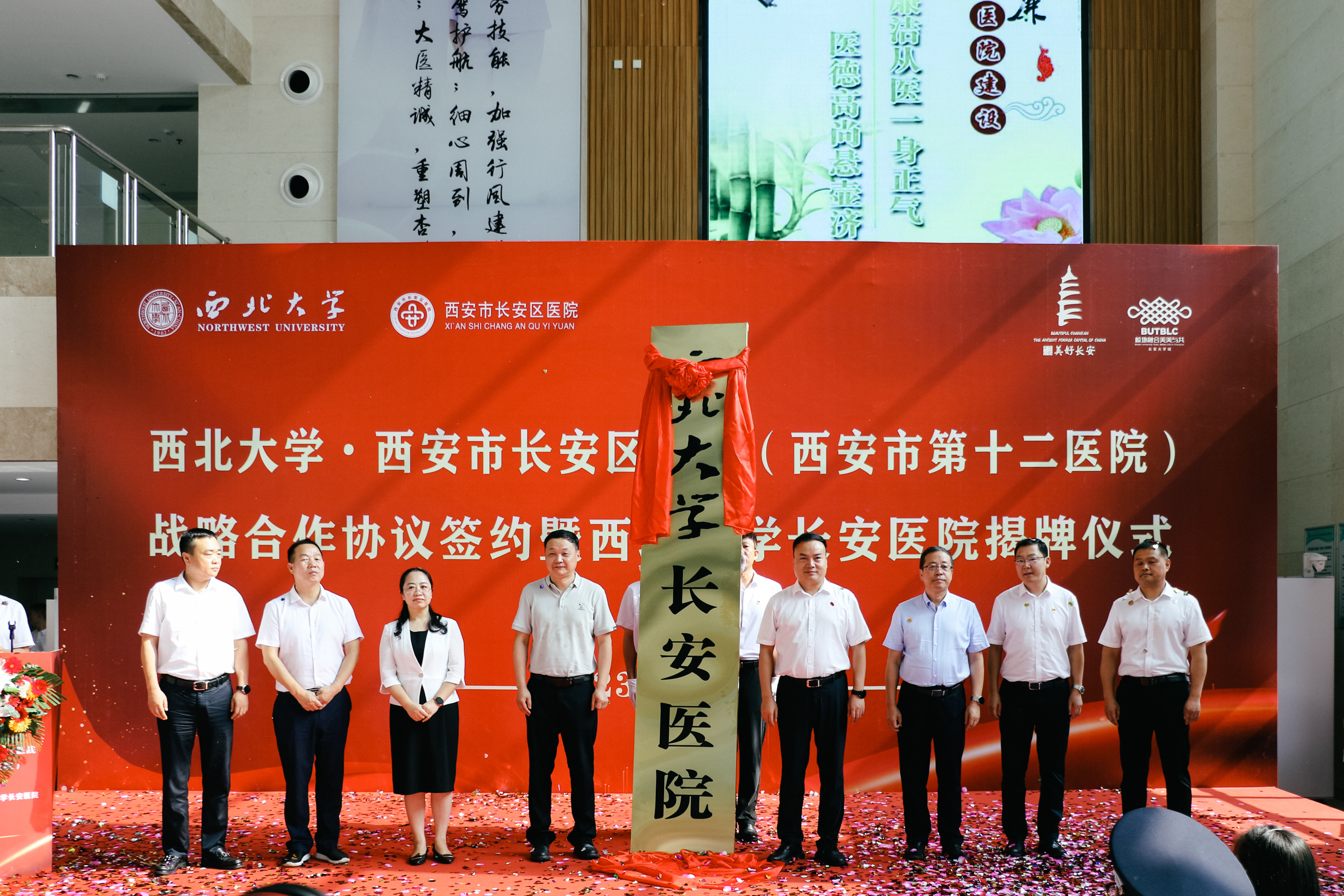 8月2日上午,“永利集团88304官网与西安市长安区医院战略合作协议签署暨永利集团88304官网长安医院揭牌仪式”在长安区医院隆重举行。长安区政府副区长杨永涛,我校党委常委、副校长、生命科学与医学部主任陈富林,长安区卫生健康局党委书记、局长王晓丹,郭杜教育科技产业开发区党工委书记梅春满,郭杜街道党工委书记李明,校国内处、校医院、永利集团88304官网及长安区医院领导班子成员和医院职工代表参加活动。我校永利集团88304官网负责人、西安市长安区医院院长胡明军代表双方共同签订了《永利集团88304官网·长安区医院战略合作协议》。