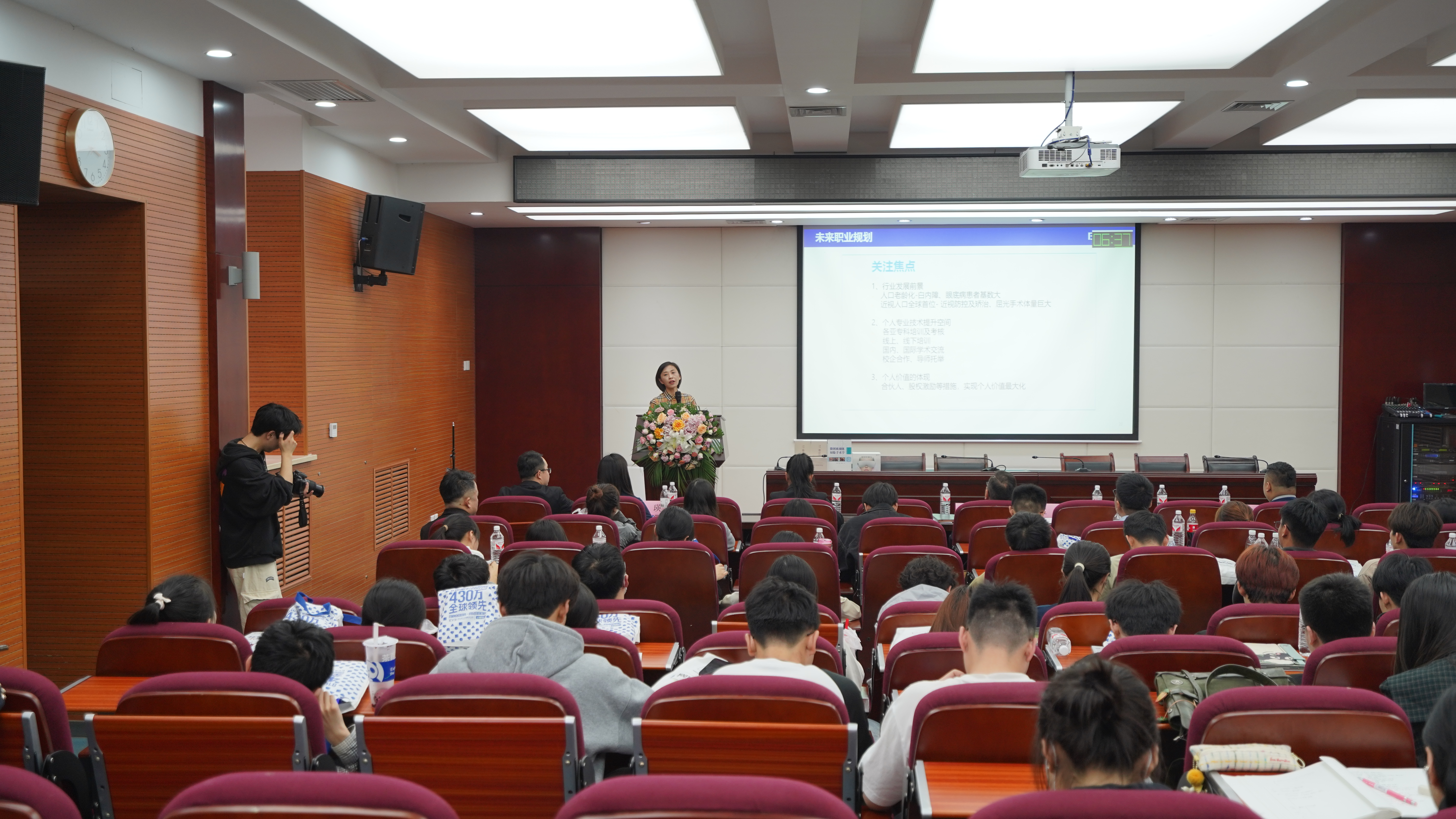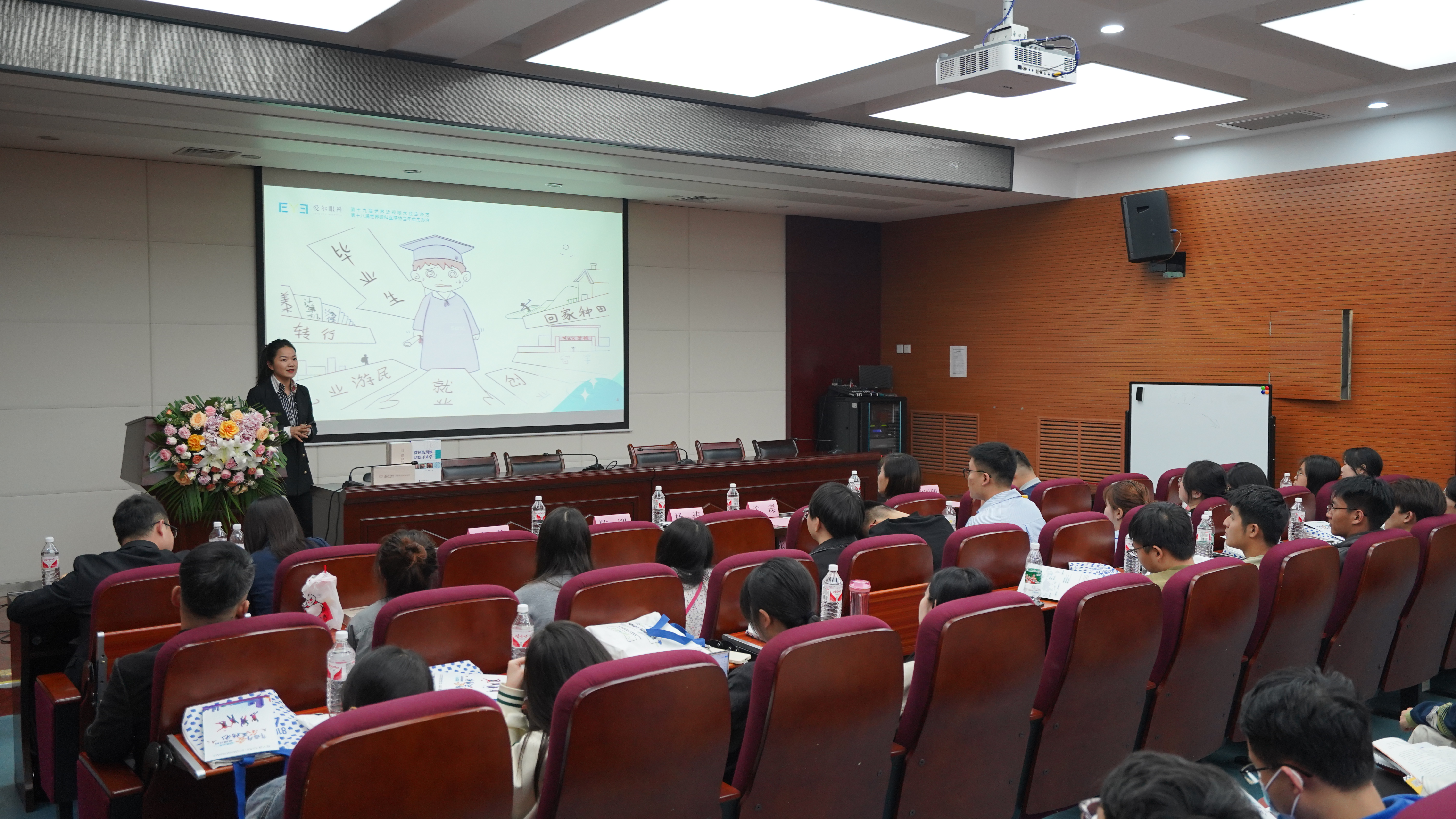 宣讲会上,爱尔眼科陕西省区人力资源总监刘小燕介绍了爱尔眼科集团的基本概况,宣传了爱尔眼科“校园大使”“眼科科普志愿者”等在校生合作培养计划,欢迎各位西大医学生、毕业生加入到眼科医疗事业的发展行列中来。