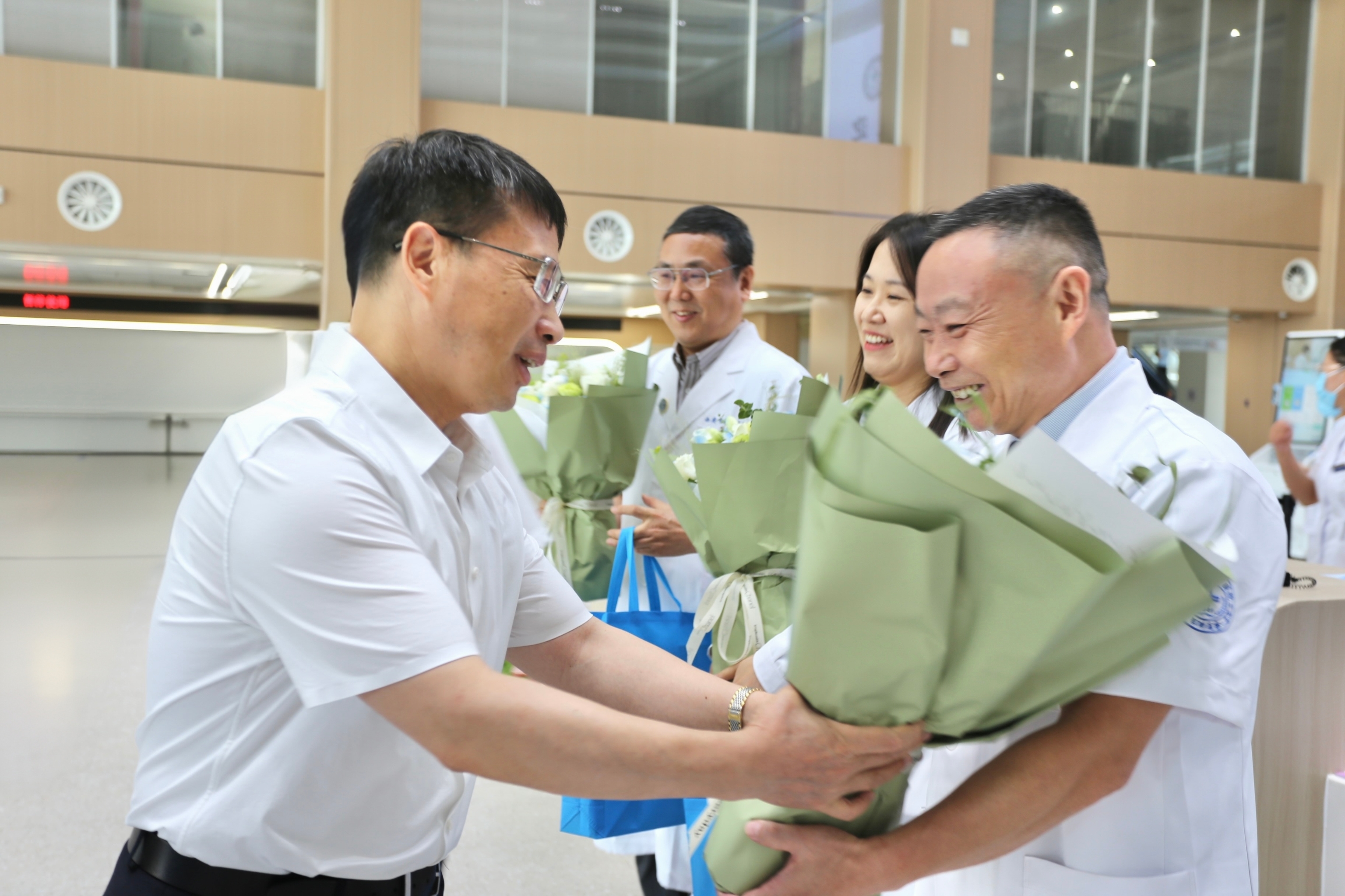 孙庆伟代表学校向医师们致以节日的问候和美好的祝愿,对各附属医院医务工作者长期以来在医学发展和患者服务方面的辛勤付出表示感谢,对各附属医院支撑西大医学人才培养,支持西大医学学科建设作出的重要贡献给予充分肯定。他希望大家能够继续发扬“敬佑生命、救死扶伤”的崇高精神,为医疗和教育事业的发展作出更大的贡献。