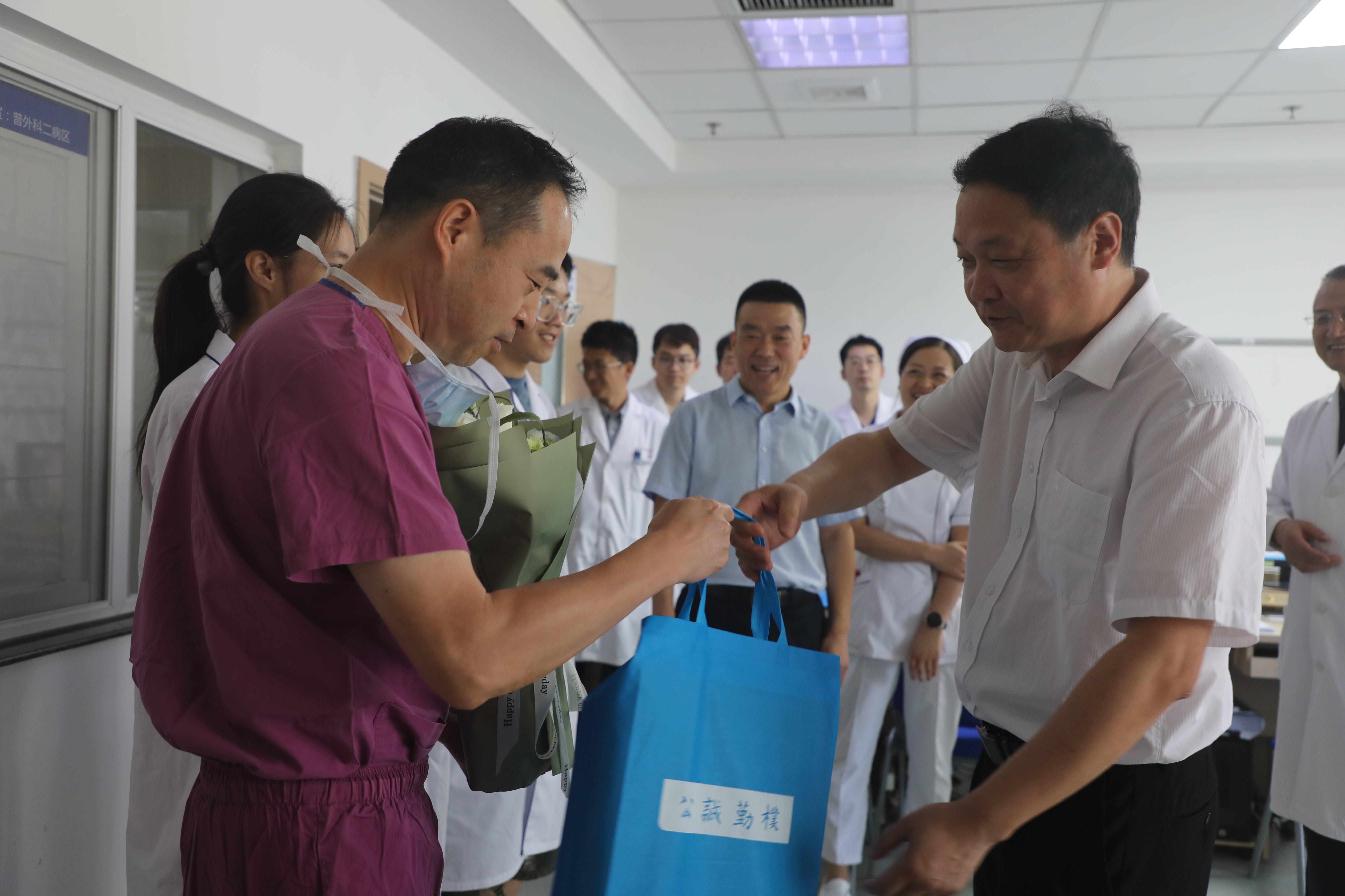 8月19日是第七个中国医师节,校党委书记蒋林、校长孙庆伟分赴附属人民医院、附属第一医院、附属医院、附属西安国际医学中心医院,走访慰问奋战在临床一线的医务工作者,向救死扶伤的医师致敬。校党委副书记吕建荣,党委常委、副校长陈富林,永利集团88304官网和各附属医院负责人陪同慰问。