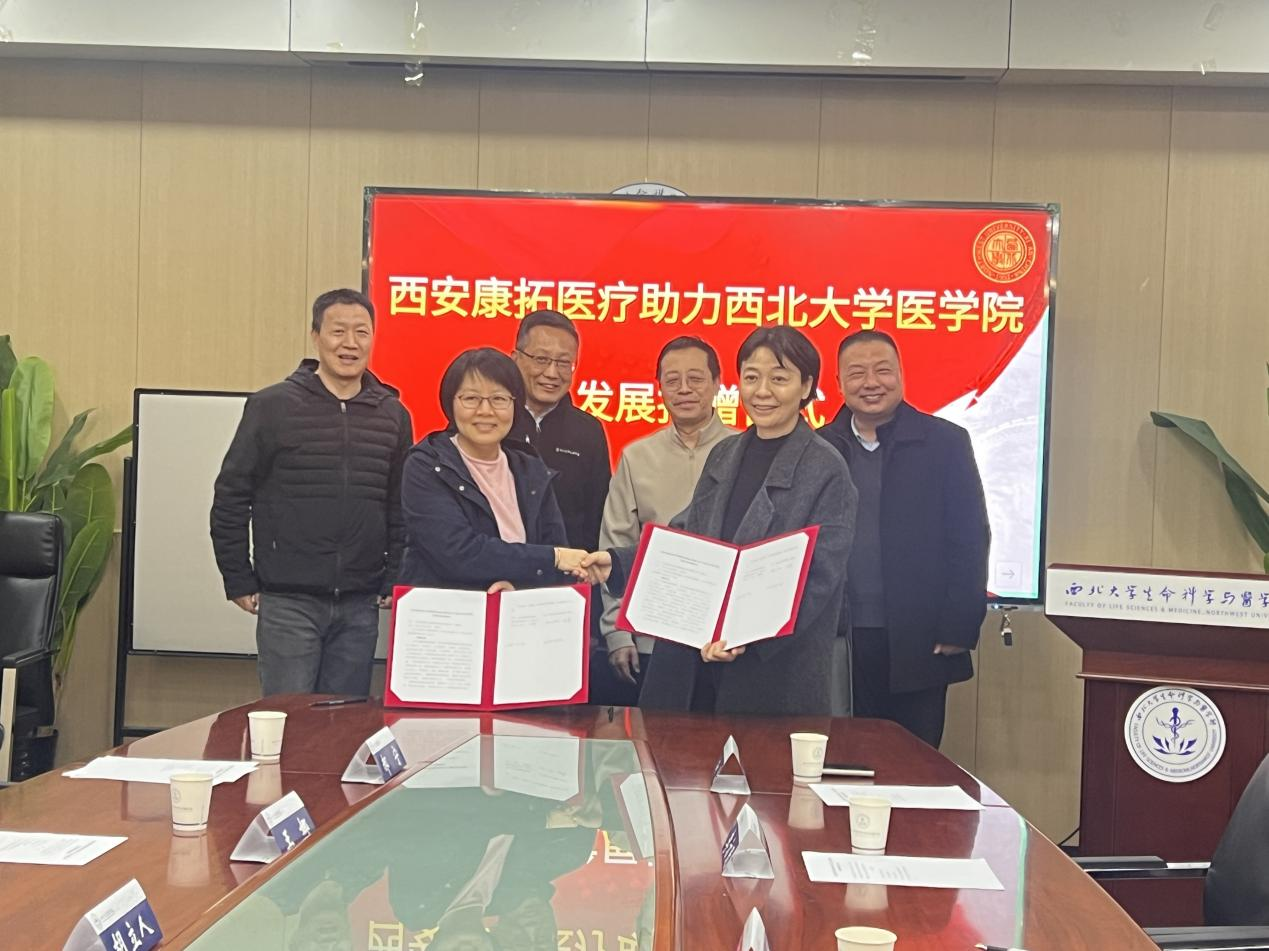 随后,冯雪与王娜签署了捐赠协议。赵钢向崔伟颁发捐赠证书。仪式结束后,校企双方就口腔医学技术的前沿发展趋势、临床教学模式的创新路径方面,深入进行交流。西安康拓医疗公司一行参观了我校口腔医学教学中心。