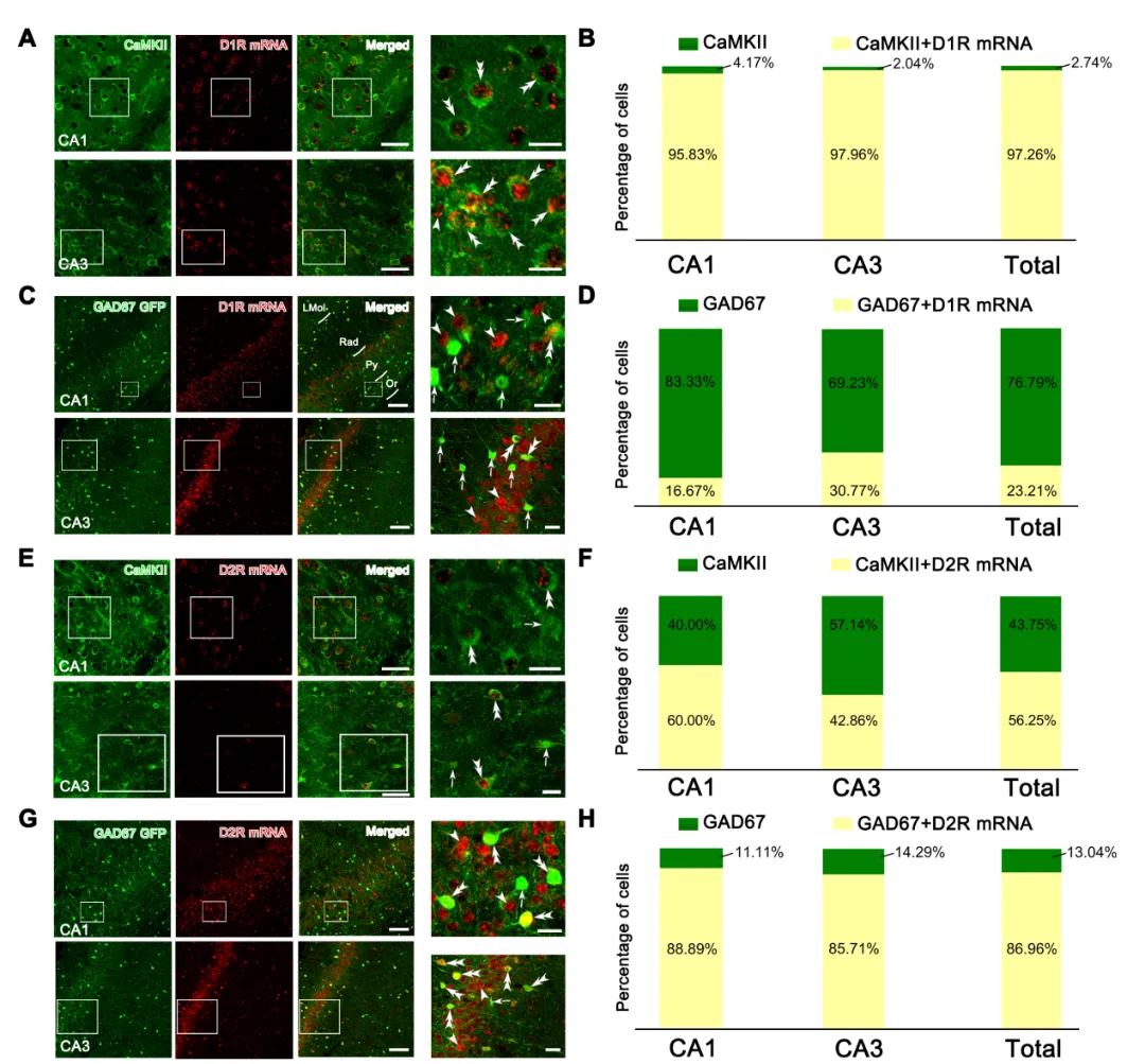 4 D1RD2RvHPC内谷氨酸能和GABA能神经元上的表达情况