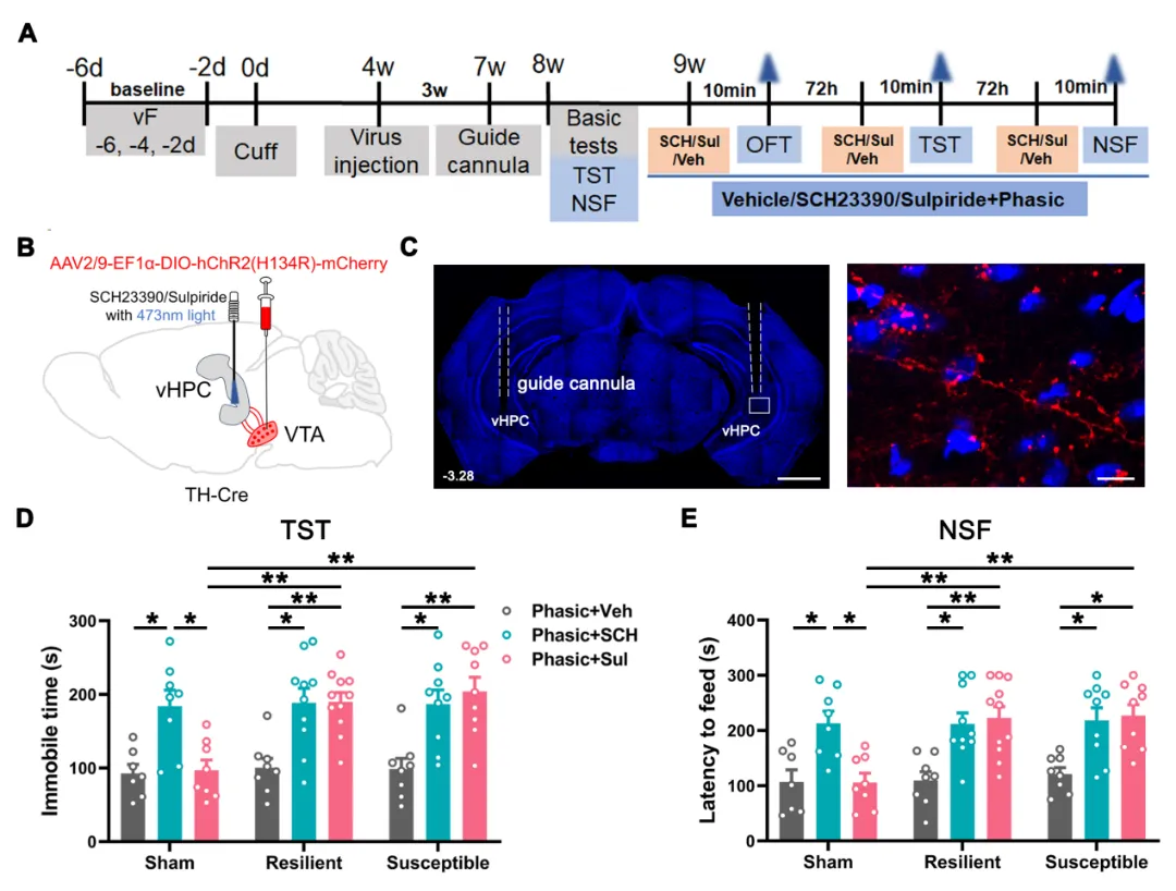 3 VTADA-vHPC通路通过D1RD2R发挥抗抑郁作用