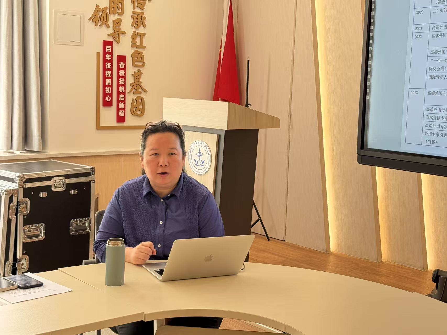会上,马苓兮对国家外国专家项目进行了系统解读,内容涵盖政策背景、申报流程以及最新变化。她结合学校近年来成功申报的典型案例,详细剖析了项目申报的关键环节与注意事项。随后,康蓉就项目申报书的撰写技巧与常见问题开展了专题讲解。并通过实际案例分析,帮助教师规避申报过程中的常见错误。她强调,申报材料不仅要逻辑严谨、格式规范,充分展现项目的创新性与应用价值,还需强化与外国专家的前期沟通,以保障合作计划切实可行。