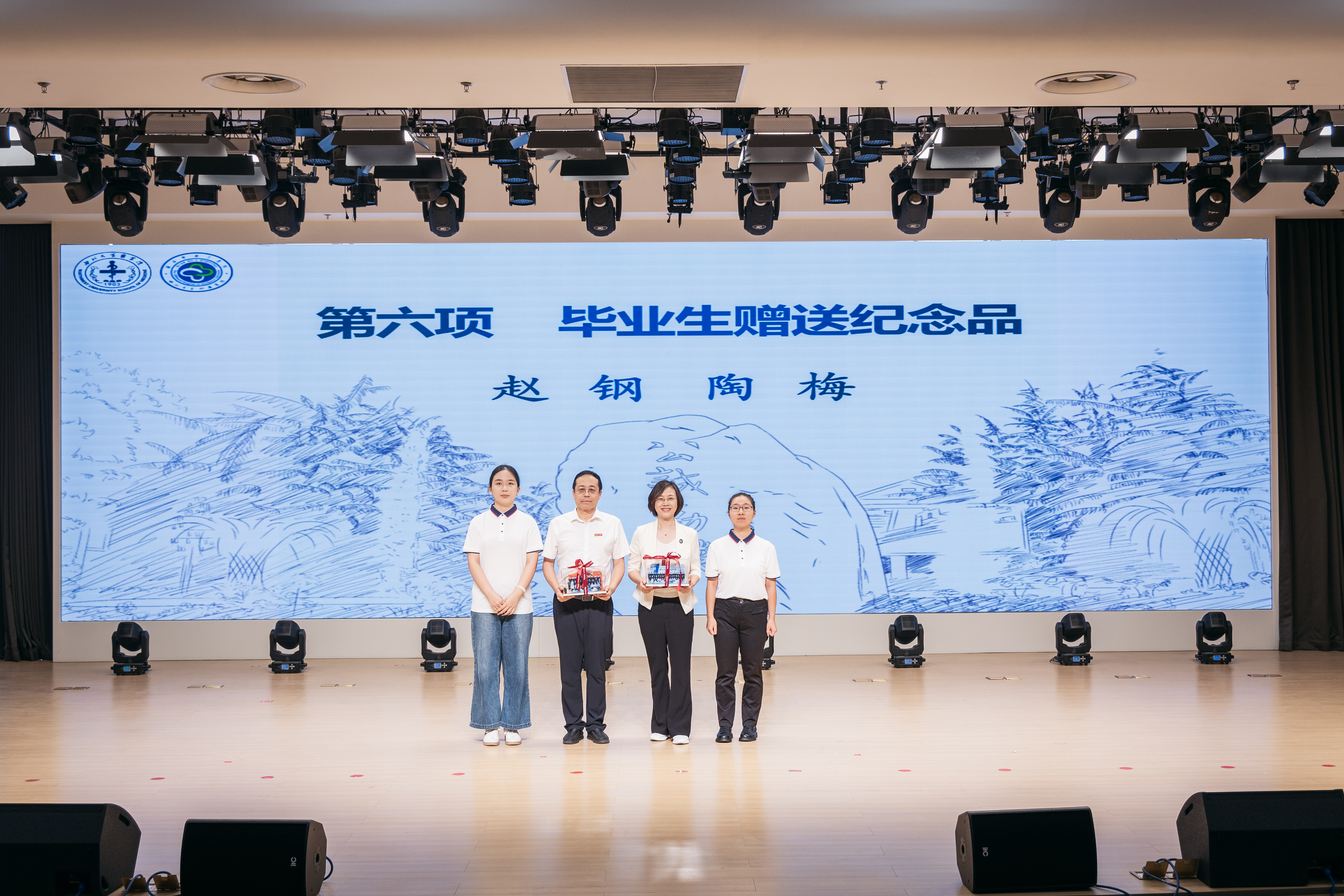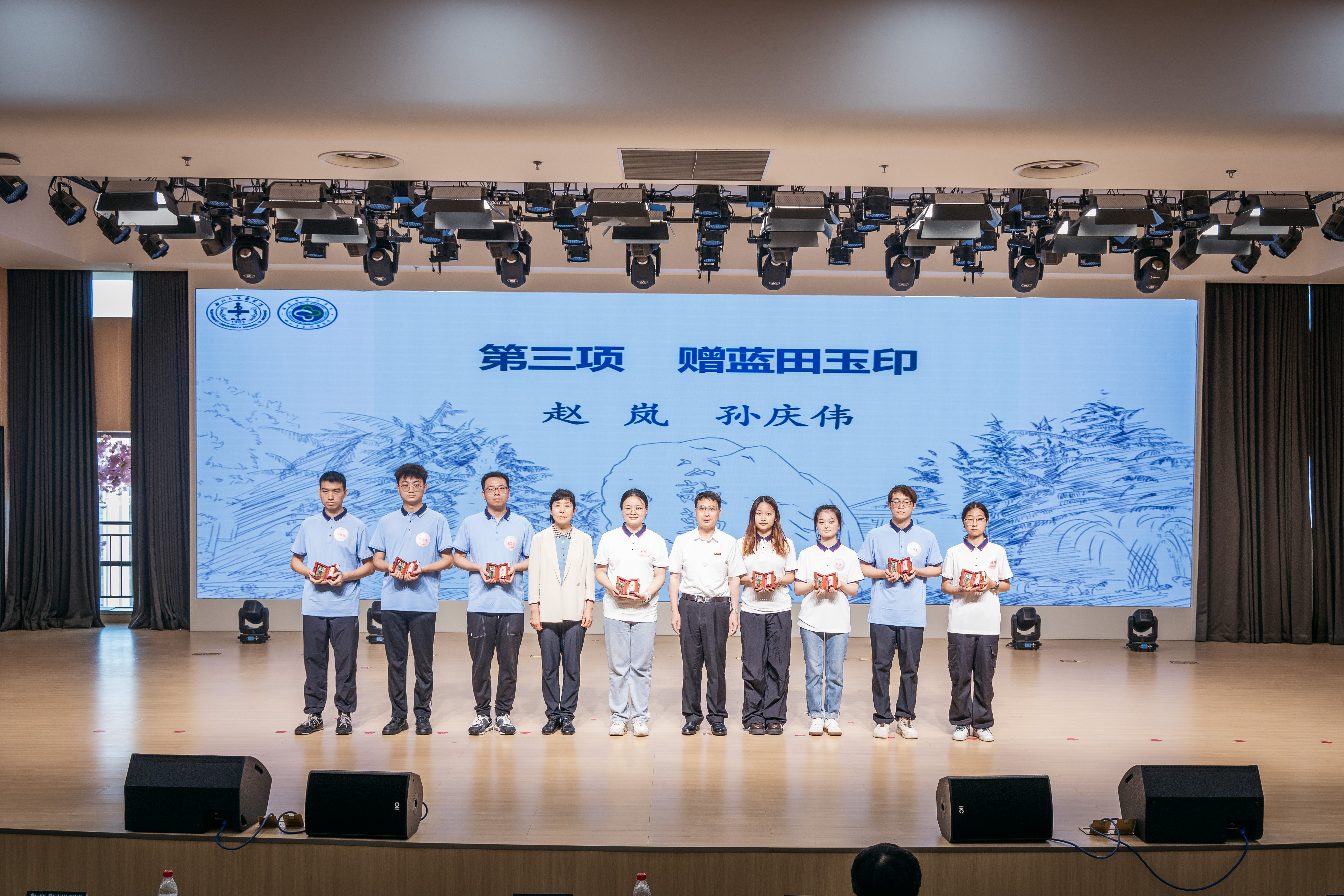 省卫生健康委副主任赵岚、我校校长孙庆伟向毕业生赠送蓝田玉印