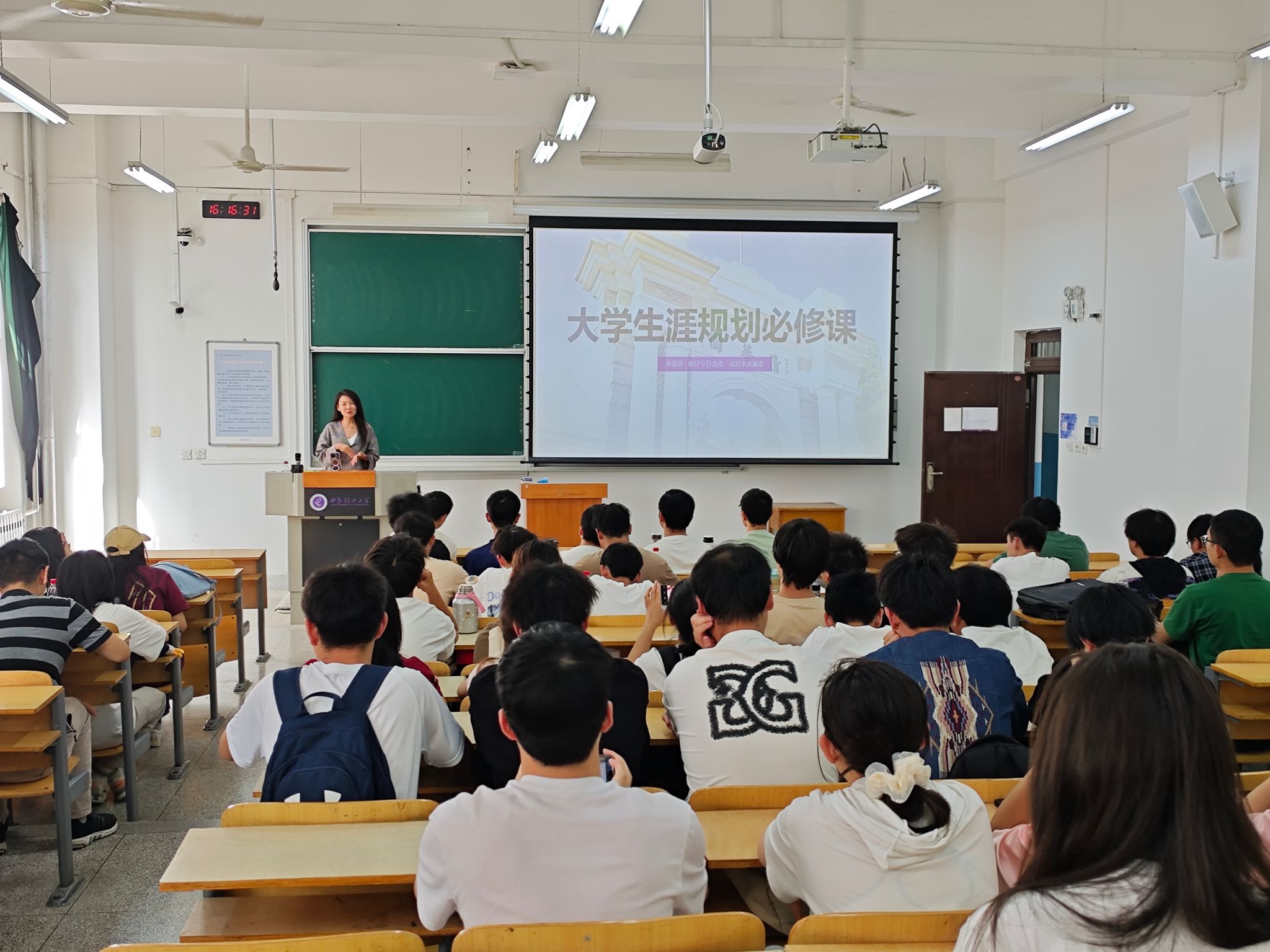 郭艳结合自身职业经历和行业洞察,深入浅出地阐述了职业生涯规划的重要性,讲解了职业生涯规划的具体步骤和方法。她指出,大一时期是职业生涯规划的黄金起点,同学们应充分利用大学时光,探索自我兴趣、能力与价值观,明确未来职业目标。她通过生动的案例分析,引导同学们进行自我评估、分析职业环境、了解行业发展趋势和岗位需求,鼓励同学们积极参与各类科技竞赛、实习实践,为未来就业积累经验。
