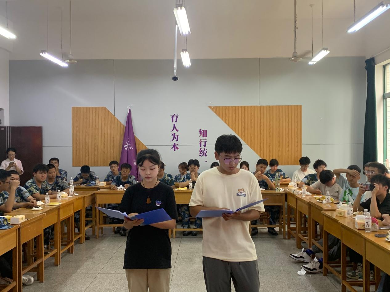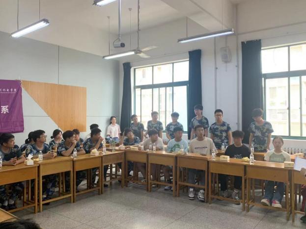 55名新生以宿舍为单位,由舍长对舍员依次进行介绍,此环节不仅活跃了现场气氛,引起同学们的共鸣,还增加了班级凝聚力。