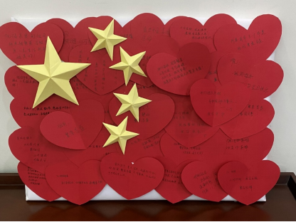 为庆祝祖国母亲的生日,支部成员在红色爱心彩纸上写上祝福,以表达对祖国母亲生日的美好祝愿:祝伟大的祖国生日快乐,祝祖国繁荣昌盛、国泰民安。